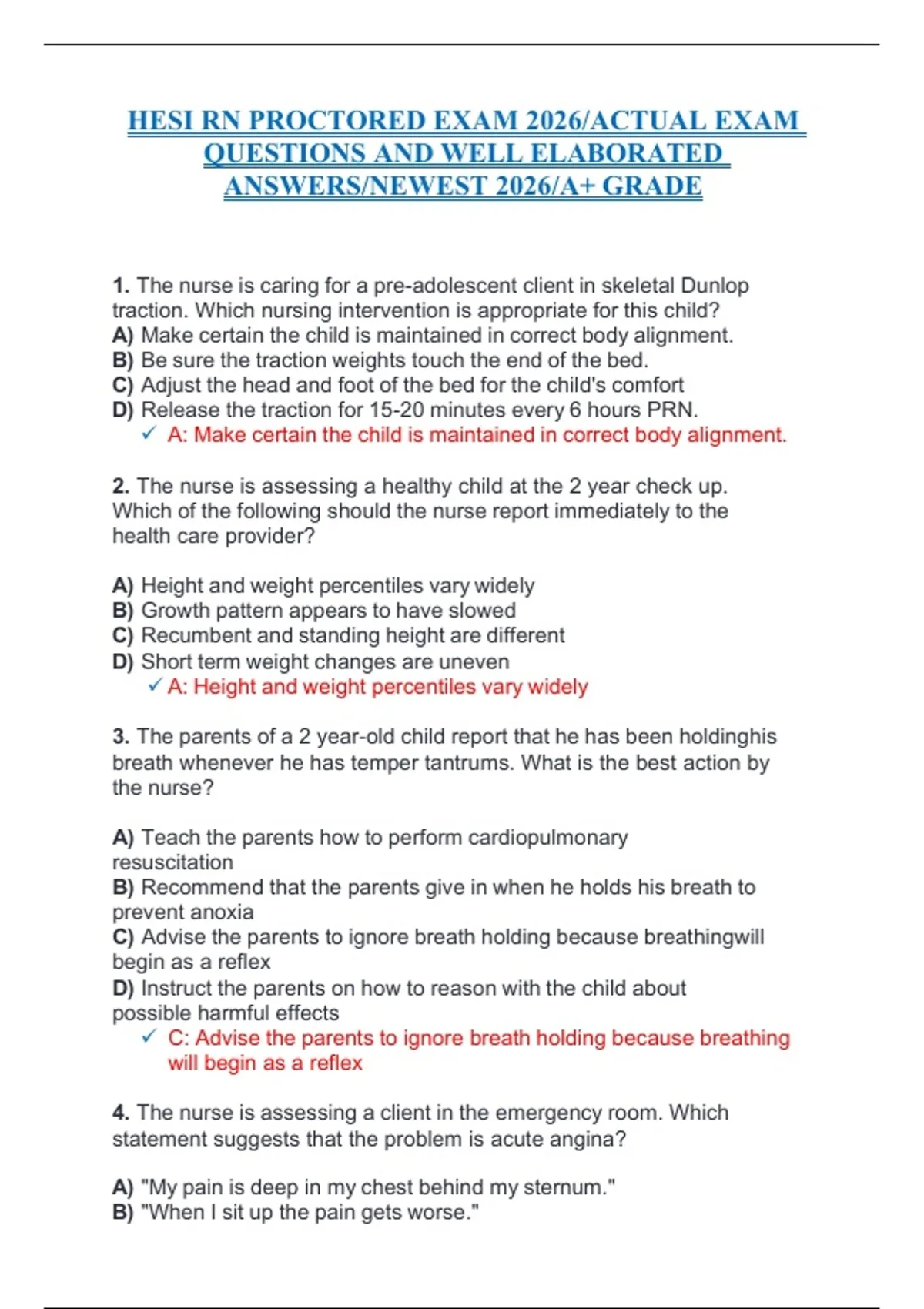 HESI RN PROCTORED EXAM 2026/ACTUAL EXAM QUESTIONS AND WELL ELABORATED ANSWERS/NEWEST 2026/A+ GRADE