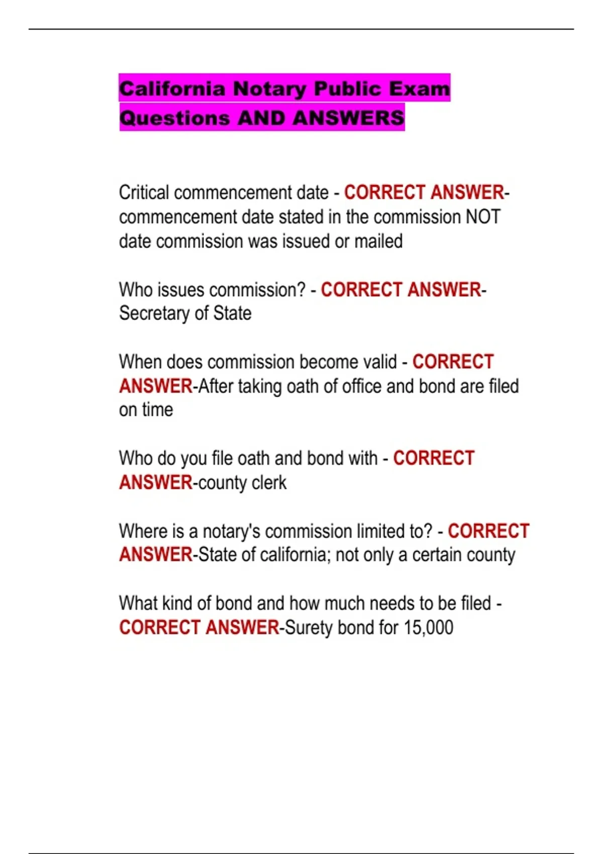 California Notary Public Exam Questions AND ANSWERS