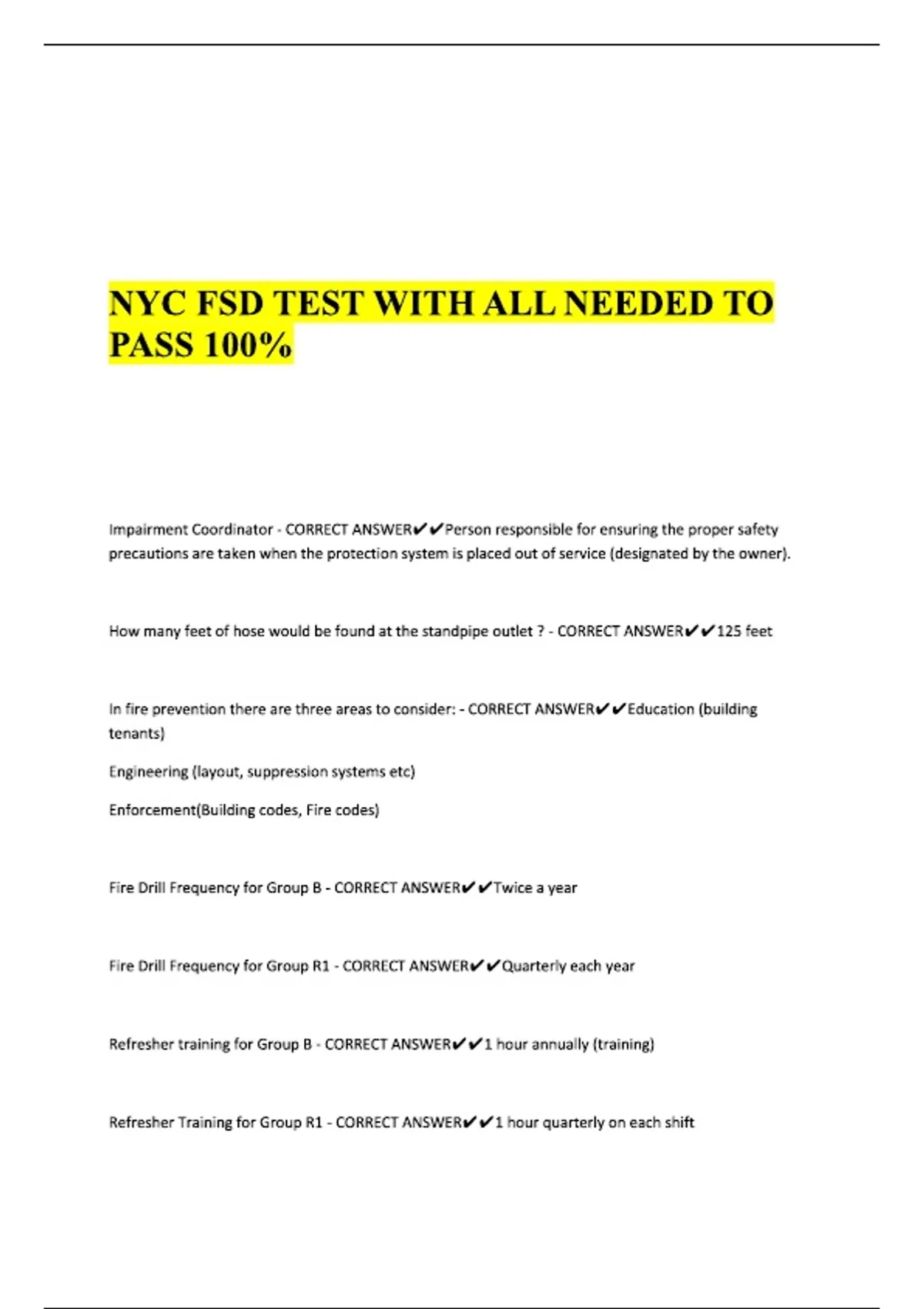 NYC FSD TEST WITH ALL NEEDED TO PASS 100%.