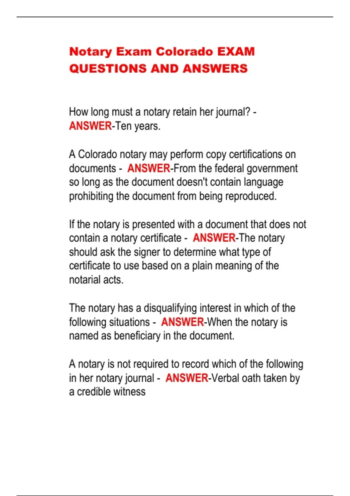 Notary Exam Colorado EXAM