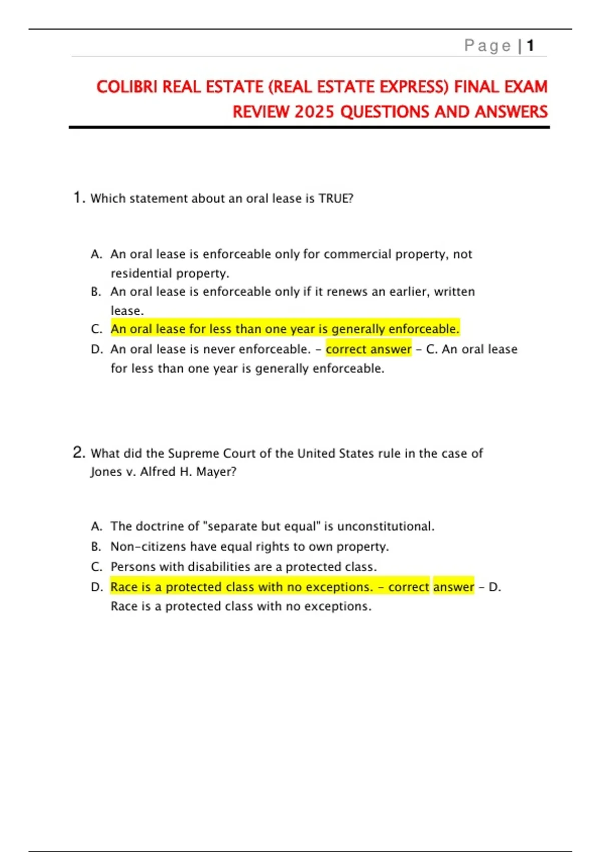 COLIBRI REAL ESTATE (REAL ESTATE EXPRESS) FINAL EXAM