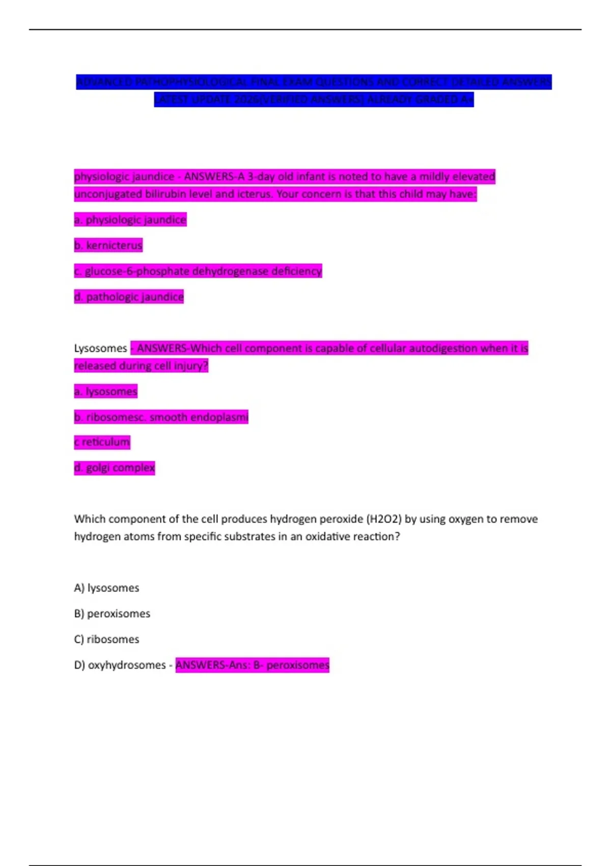 ADVANCED PATHOPHYSIOLOGICAL FINAL EXAM QUESTIONS AND CORRECT DETAILED ANSWERS LATEST UPDATE 2026(VERIFIED ANSWERS) ALREADY GRADED A+