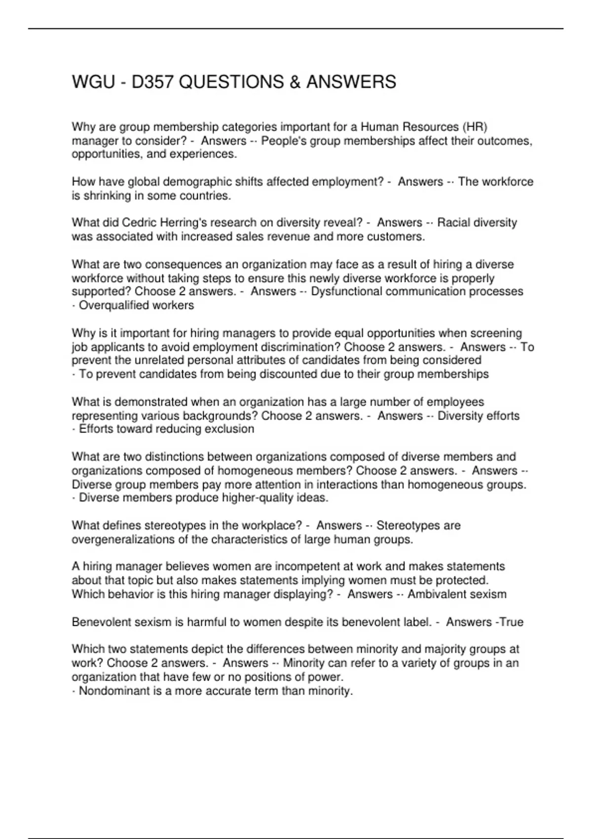 work? Choose 2 answers. - Answers -· Minority can refer to a variety of groups in an