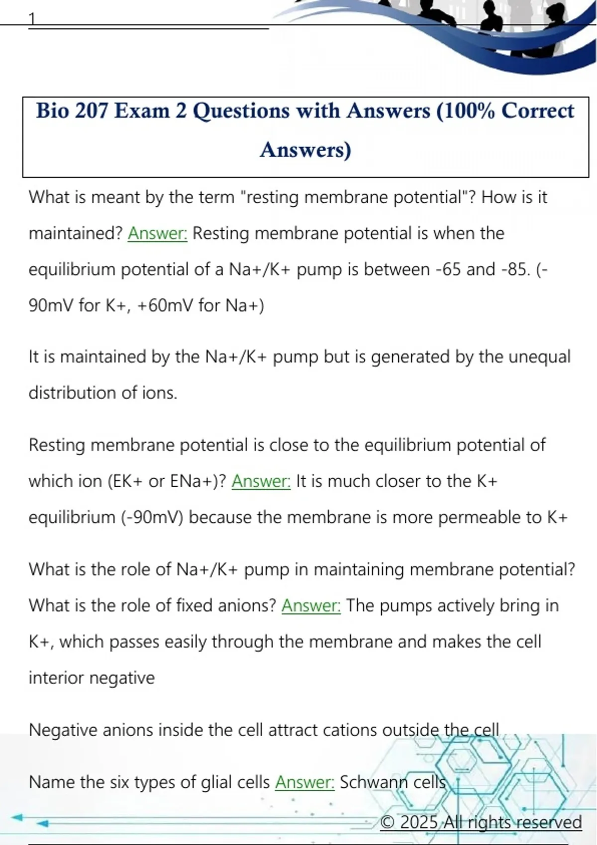 Bio 207 Exam 2 Questions with Answers (100% Correct Answers)