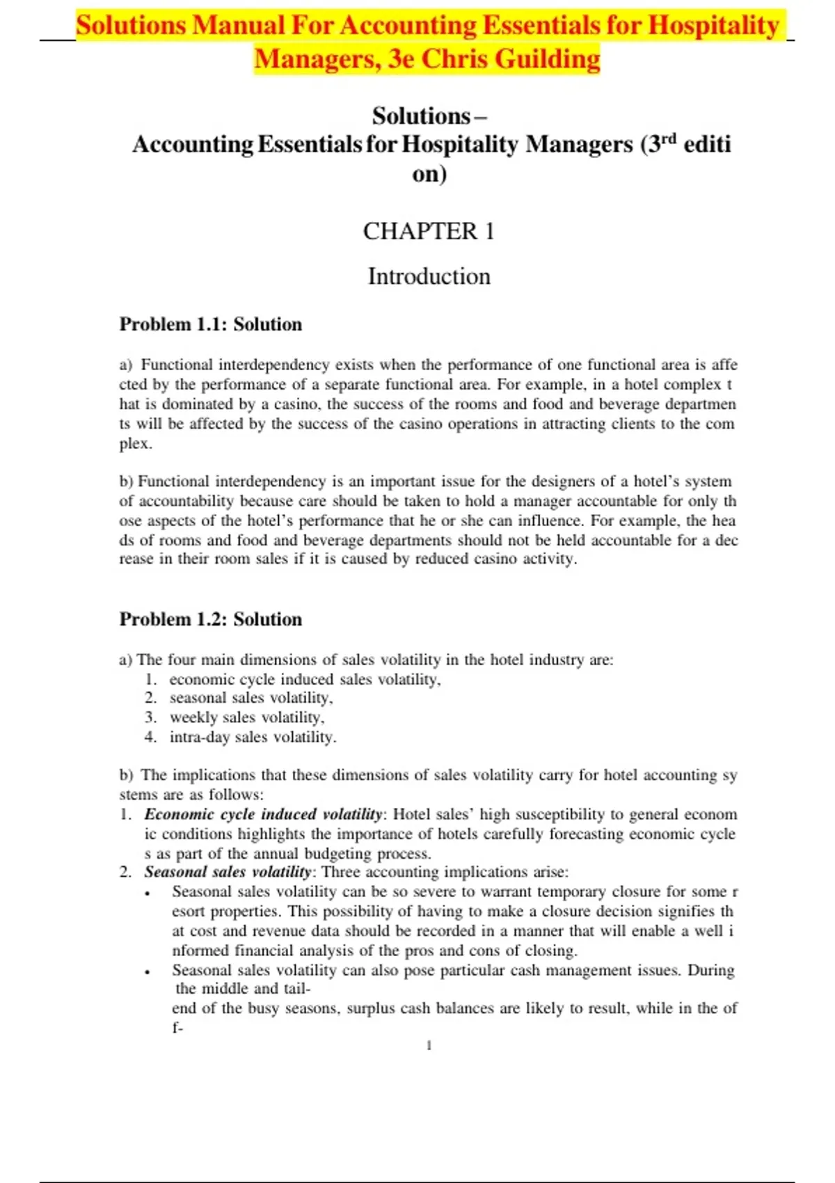 SOLUTION MANUAL FOR Accounting Essentials for Hospitality Managers 3rd Edition by Chris Guilding COMPLETE GUIDE WITH RATIONALES 100% VERIFIED A+ GRADE ASSURED!!!!!!NEW LATEST UPDATE!!!!!