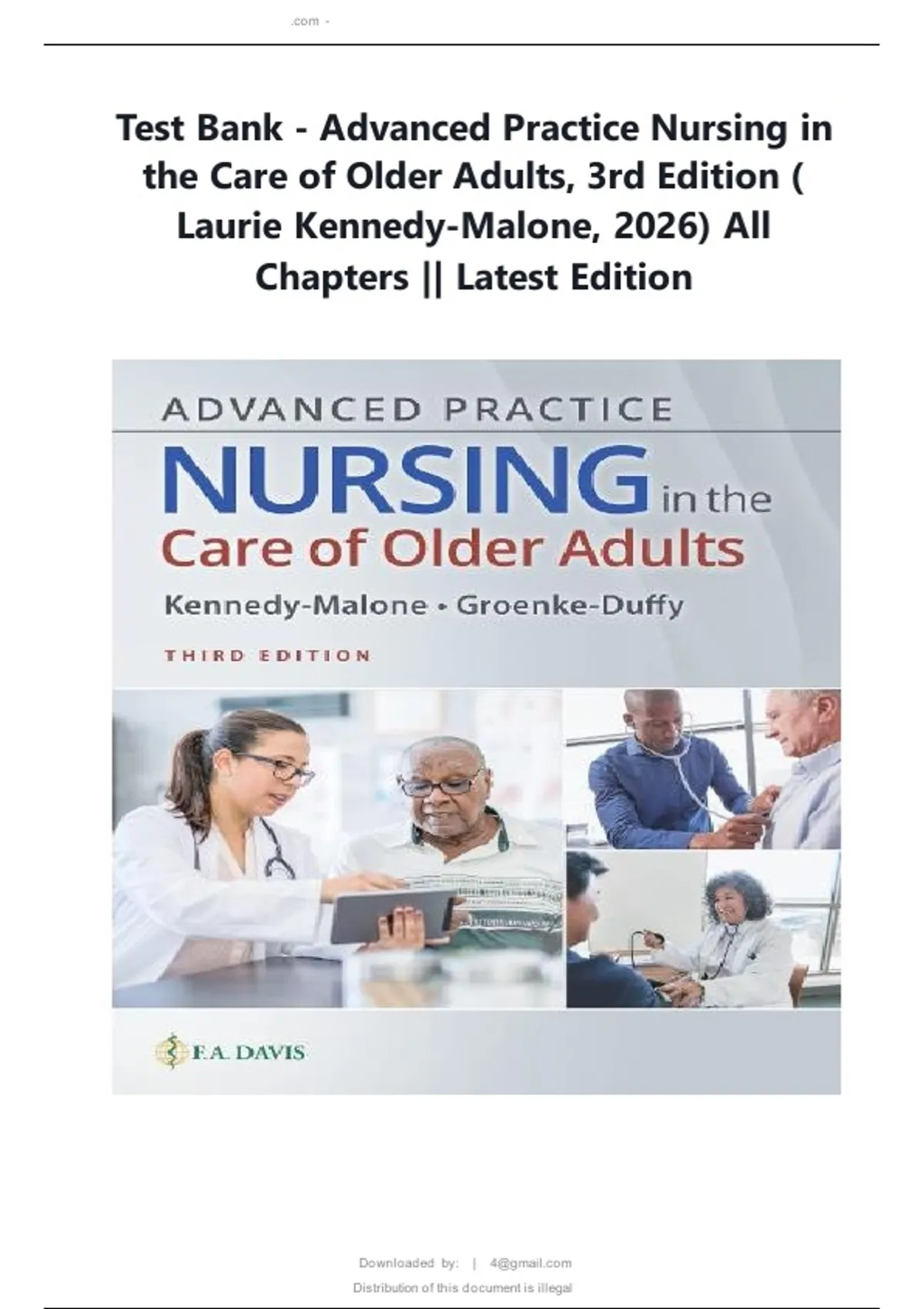 Advanced Practice Nursing In The Care Of Older Adults / 3 R D TESTBANK