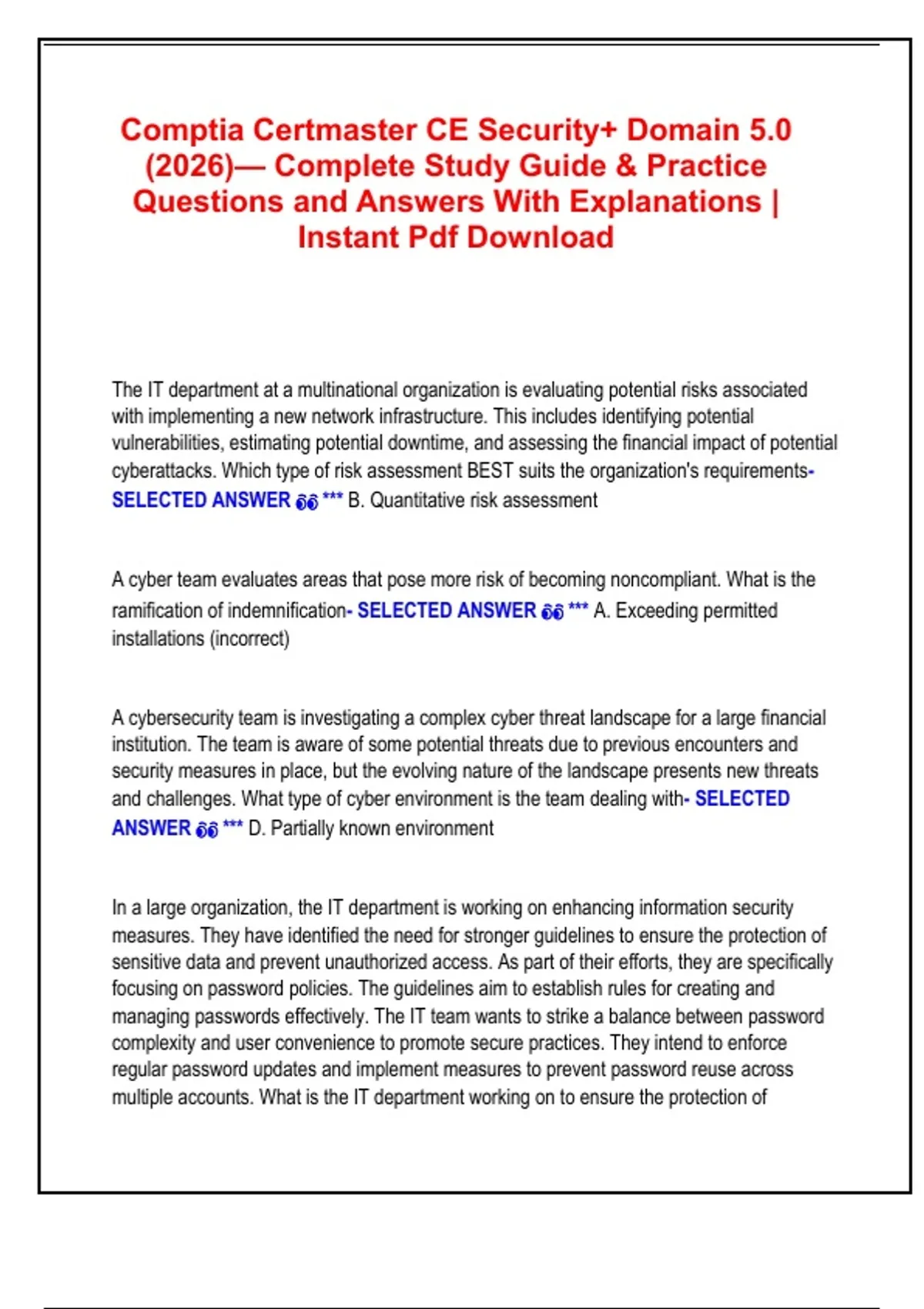 SELECTED ANSWER 👀 *** B. Quantitative risk assessment