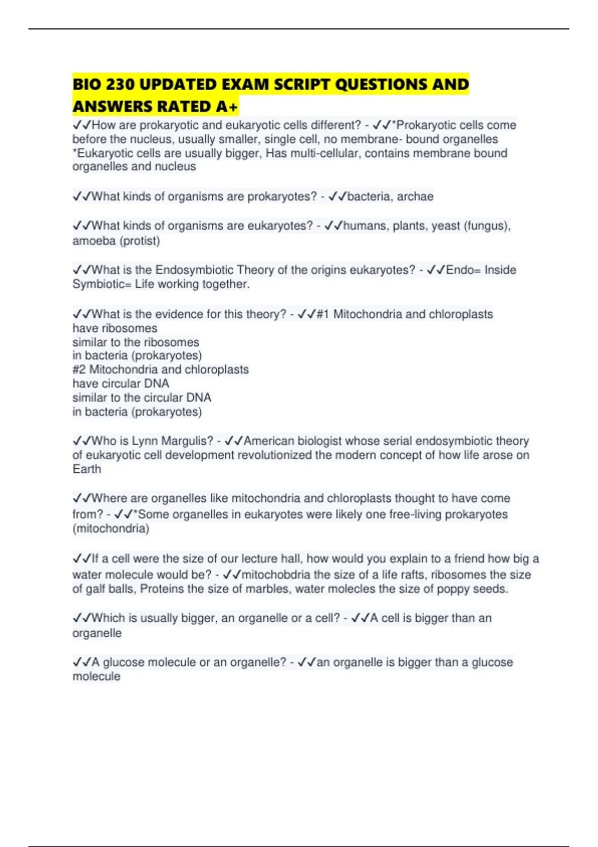 BIO 230 UPDATED EXAM SCRIPT QUESTIONS AND ANSWERS RATED A+