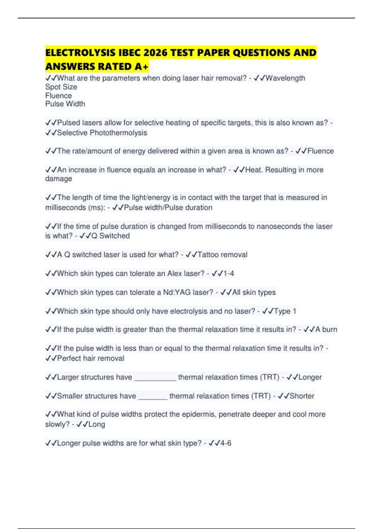 ELECTROLYSIS IBEC 2026 TEST PAPER QUESTIONS AND ANSWERS RATED A+