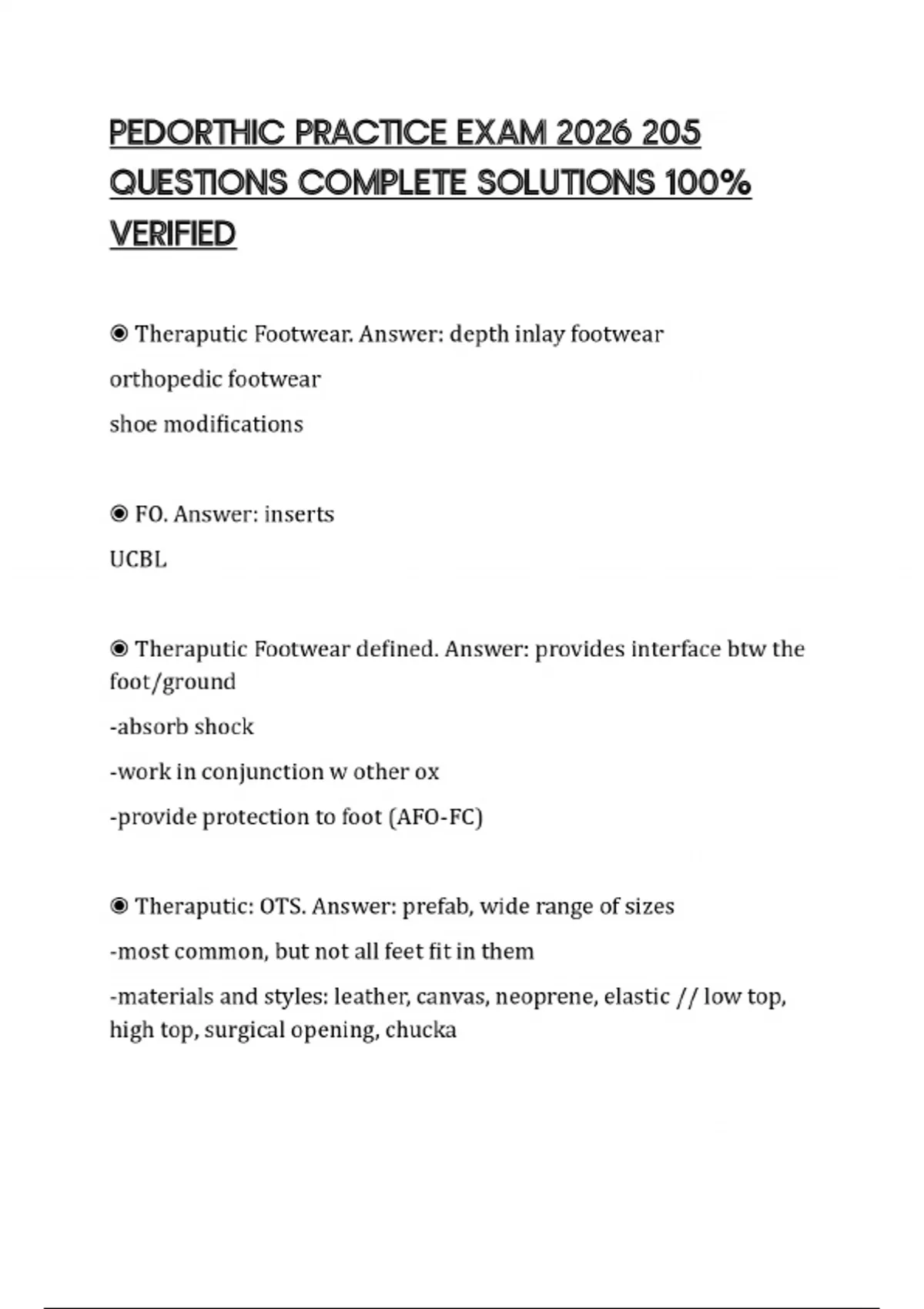PEDORTHIC PRACTICE EXAM 2026 205 QUESTIONS COMPLETE SOLUTIONS 100% VERIFIED