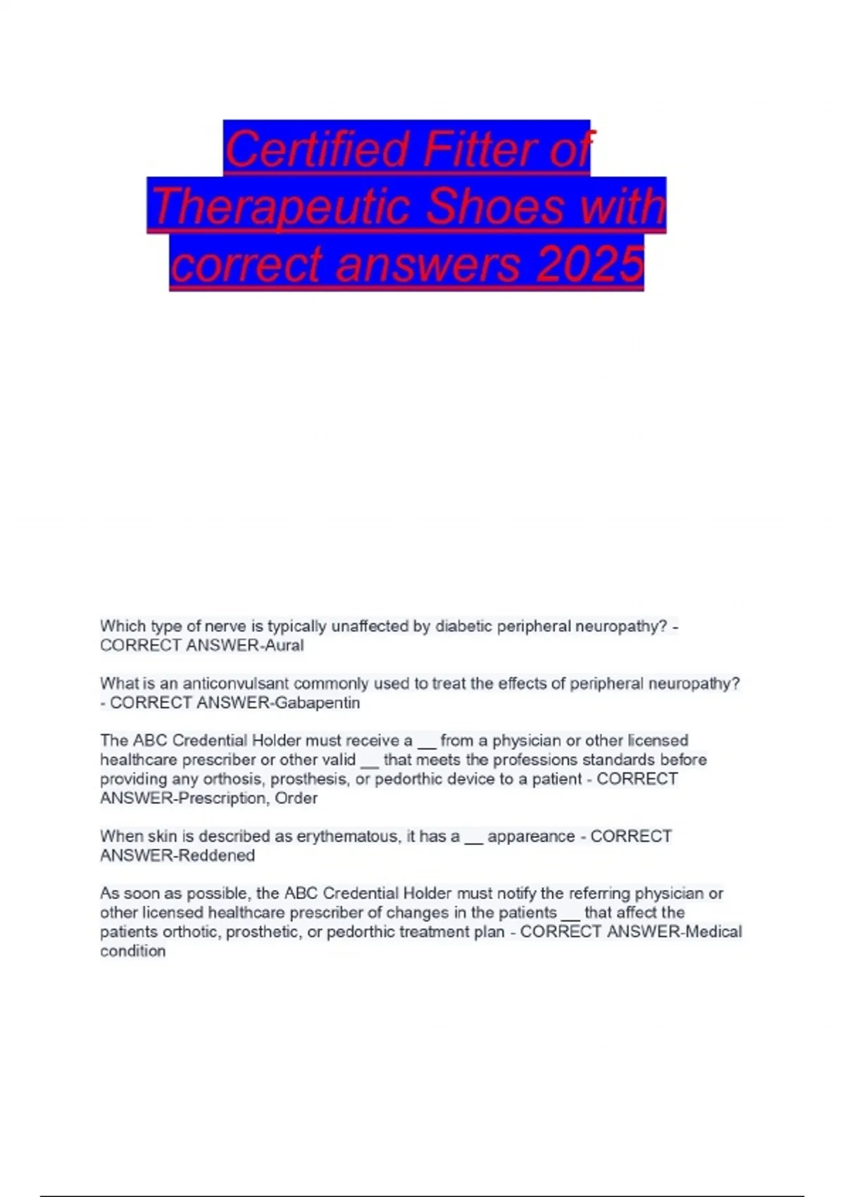 Certified Fitter of Therapeutic Shoes Questions with 100% correct answers 2025 | 2026