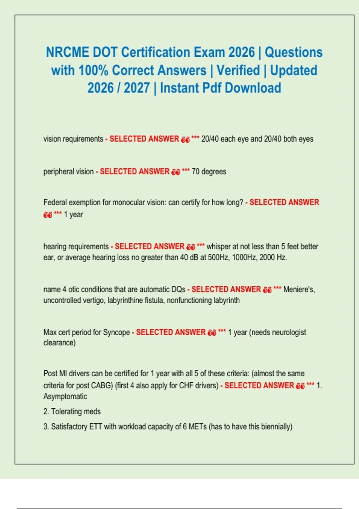 criteria for post CABG) (first 4 also apply for CHF drivers) - SELECTED ANSWER 👀 *** 1.