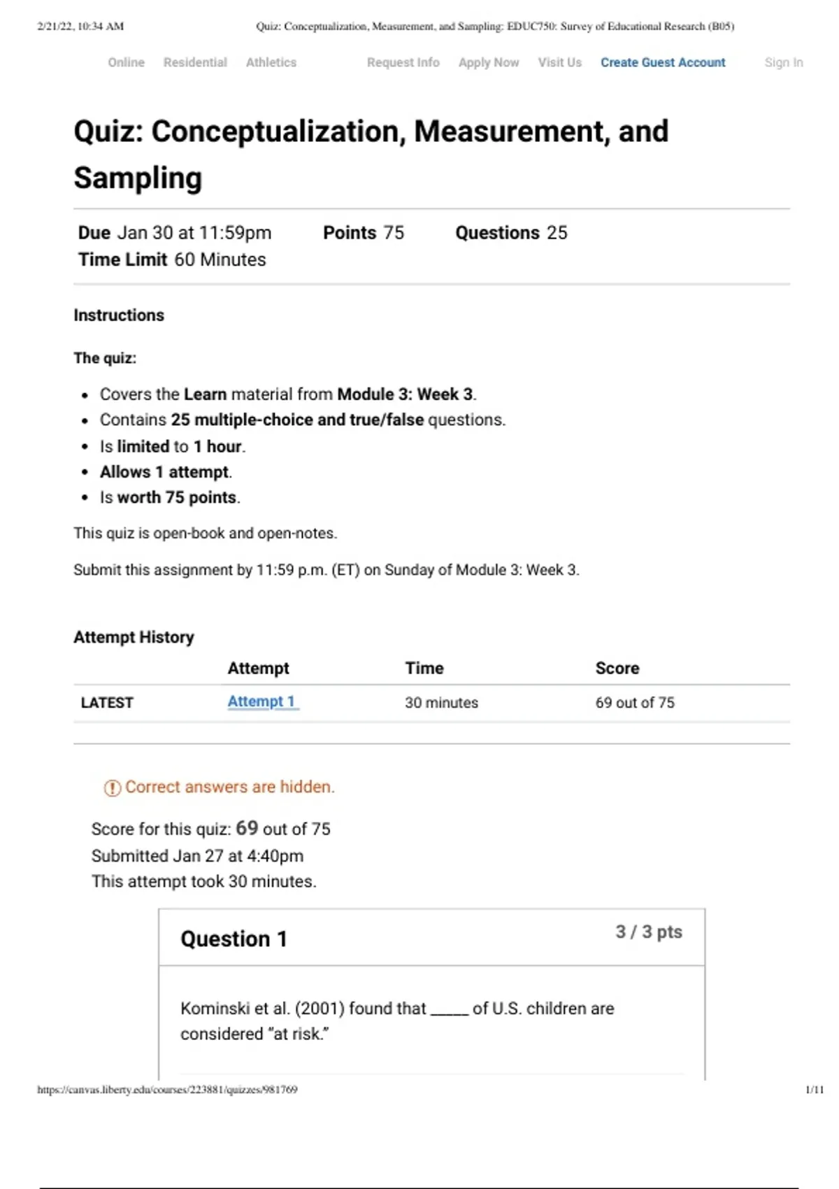 https://canvas.liberty.edu/courses/223881/quizzes/981769 1/11