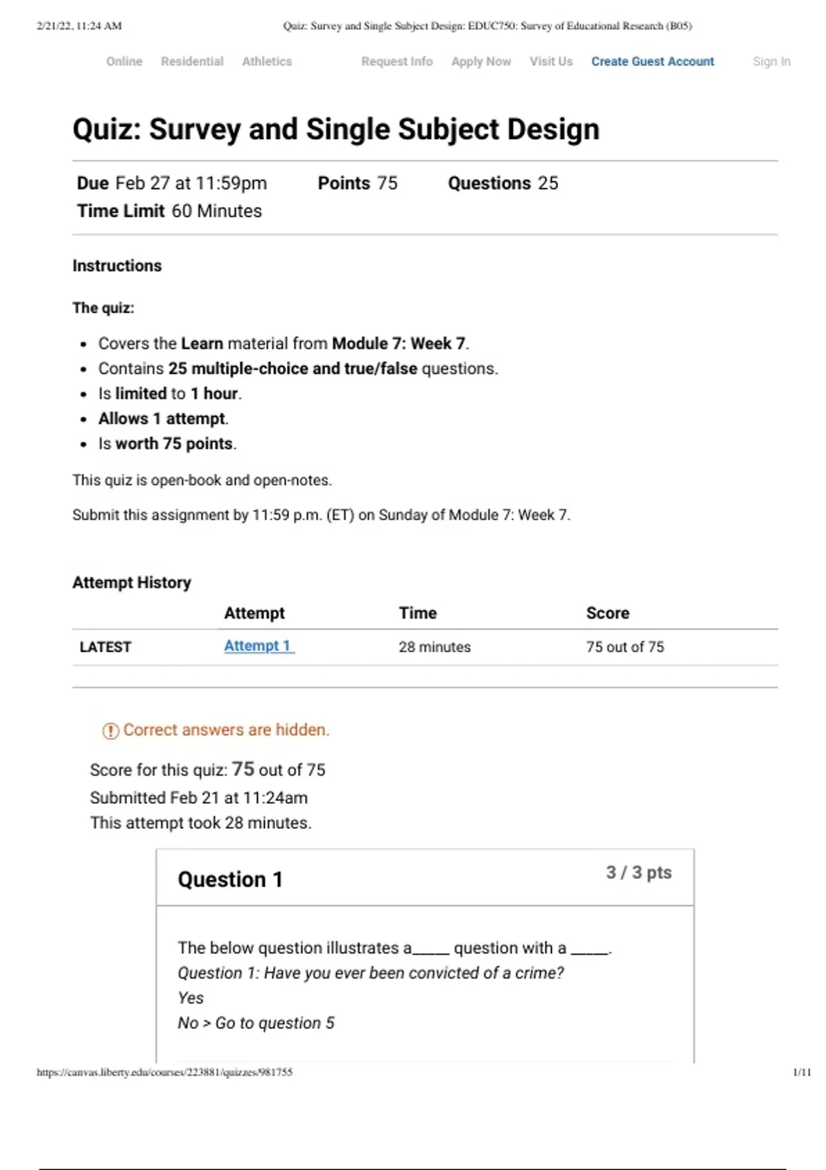 https://canvas.liberty.edu/courses/223881/quizzes/981755 1/11