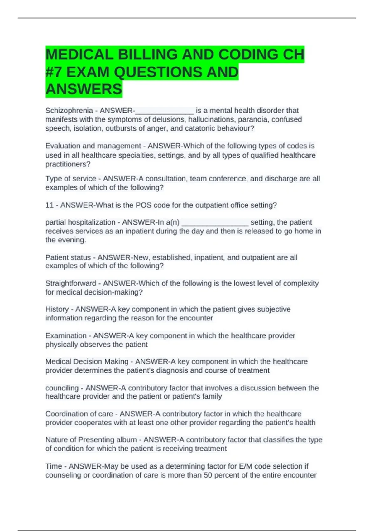 MEDICAL BILLING AND CODING CH