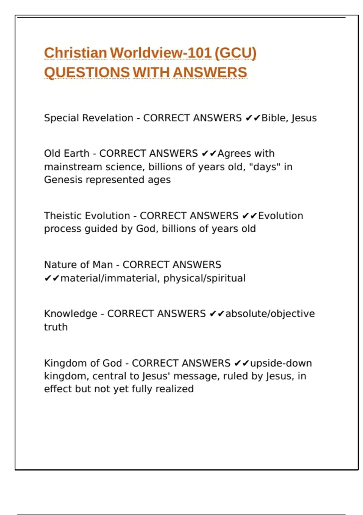 Old Earth - CORRECT ANSWERS ✔✔Agrees with