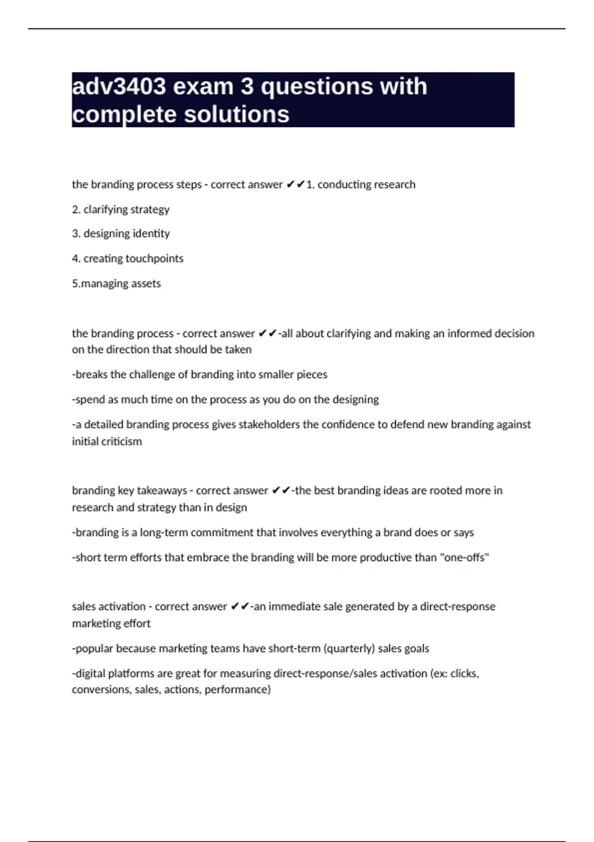 the branding process - correct answer ✔✔-all about clarifying and making an informed decision
