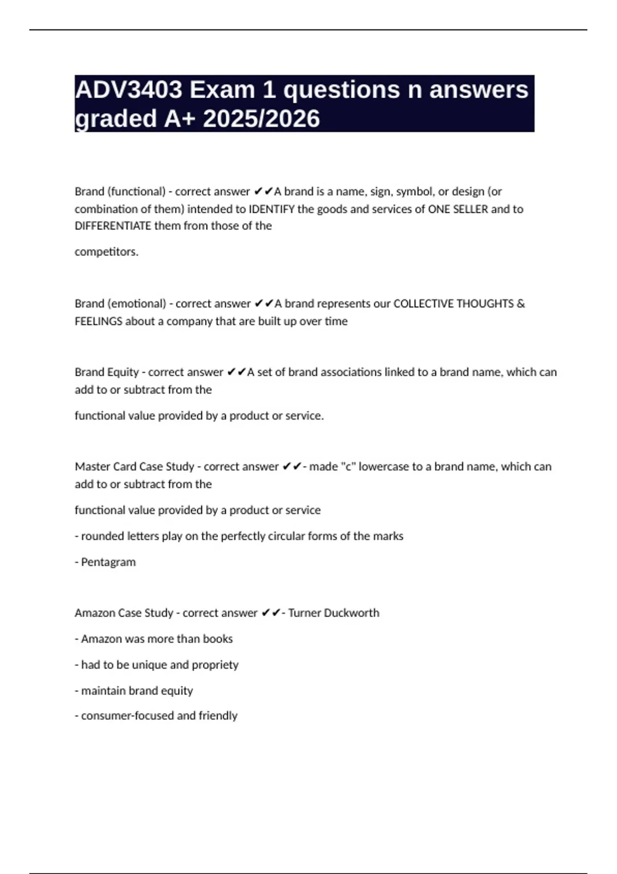 Brand (functional) - correct answer ✔✔A brand is a name, sign, symbol, or design (or