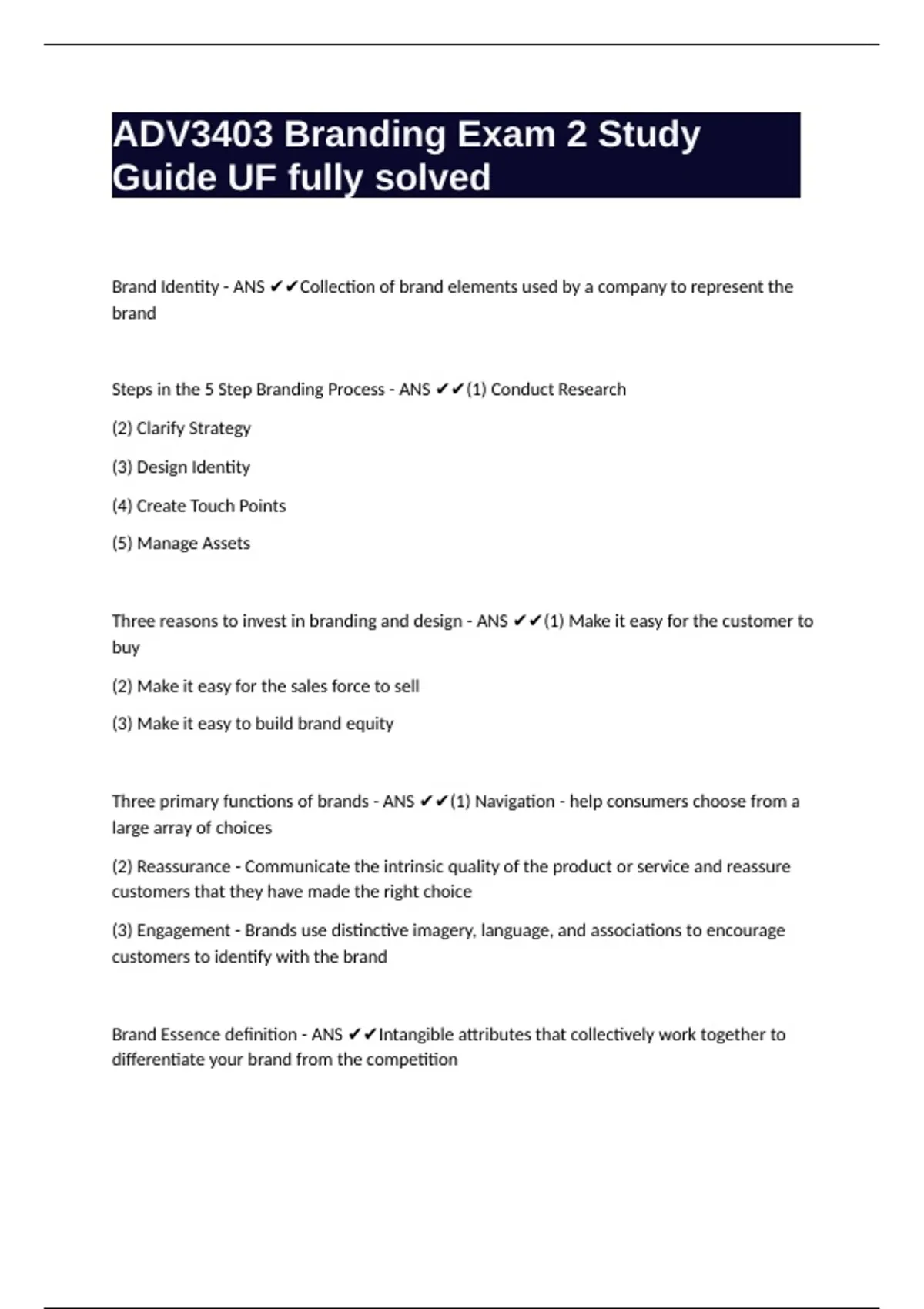 Three primary functions of brands - ANS ✔✔(1) Navigation - help consumers choose from a