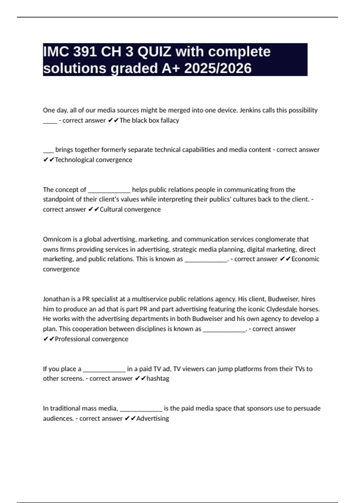 IMC 391 CH 3 QUIZ with complete solutions graded A+ 2025/2026