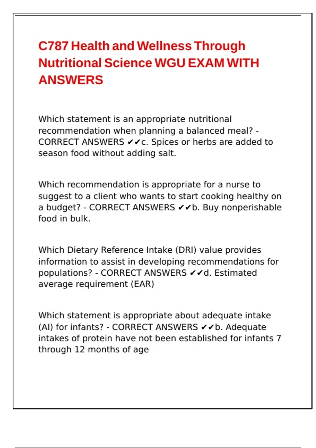 Nutritional Science WGU EXAM WITH |\ |\ |\ |\ |\