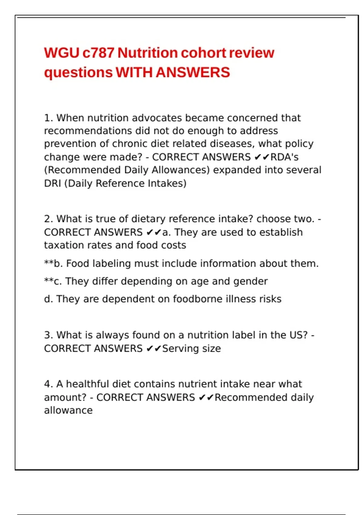 WGU c787 Nutrition cohort review questions WITH ANSWERS,