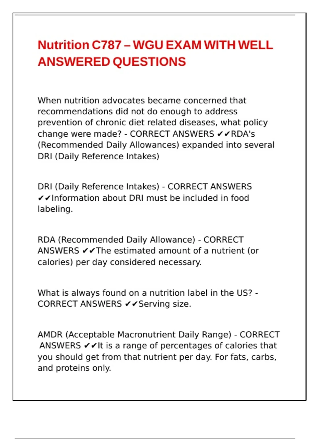 Nutrition C787 – WGU EXAM WITH WELL ANSWERED QUESTIONS