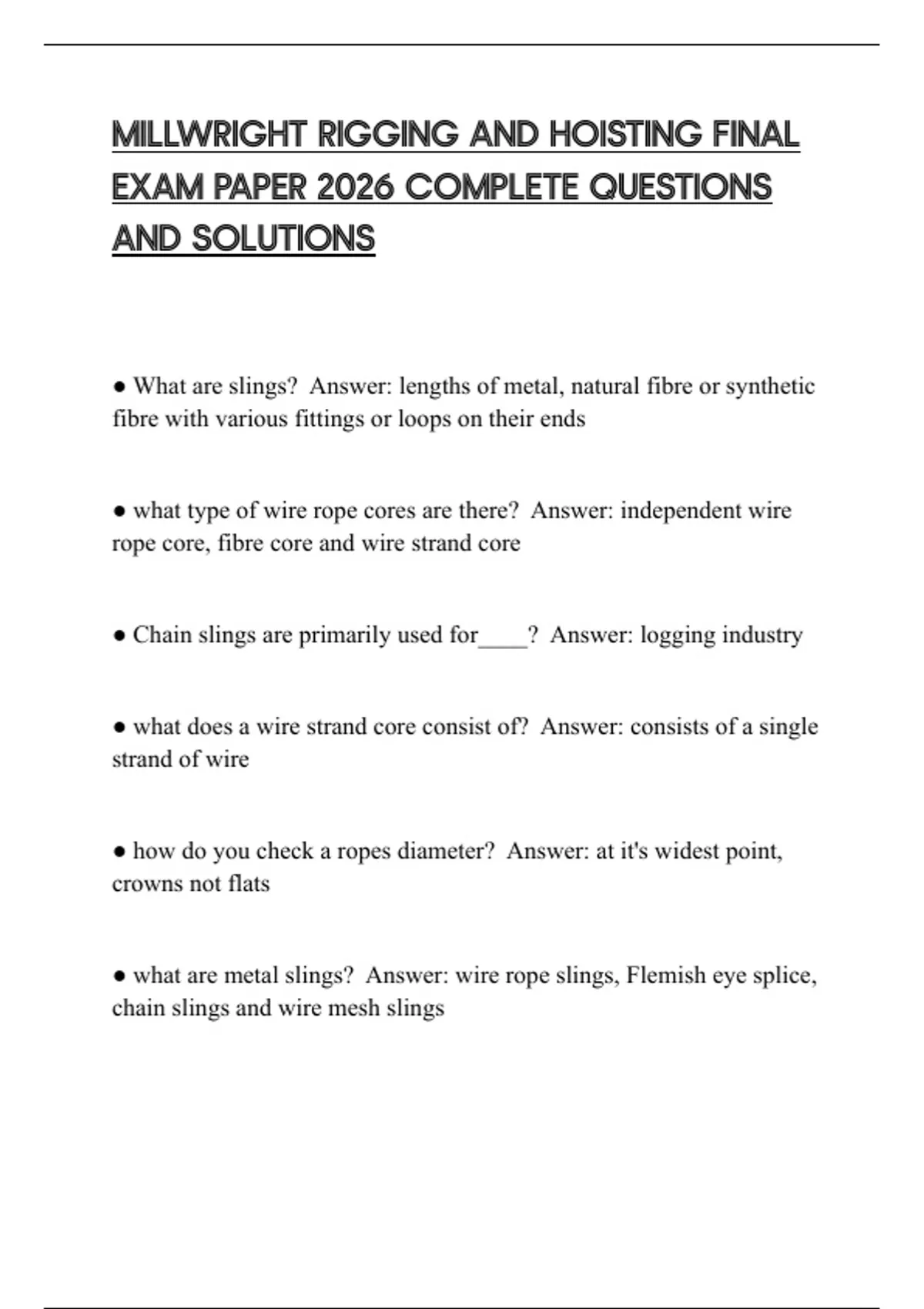 MILLWRIGHT RIGGING AND HOISTING FINAL EXAM PAPER 2026 COMPLETE QUESTIONS AND SOLUTIONS