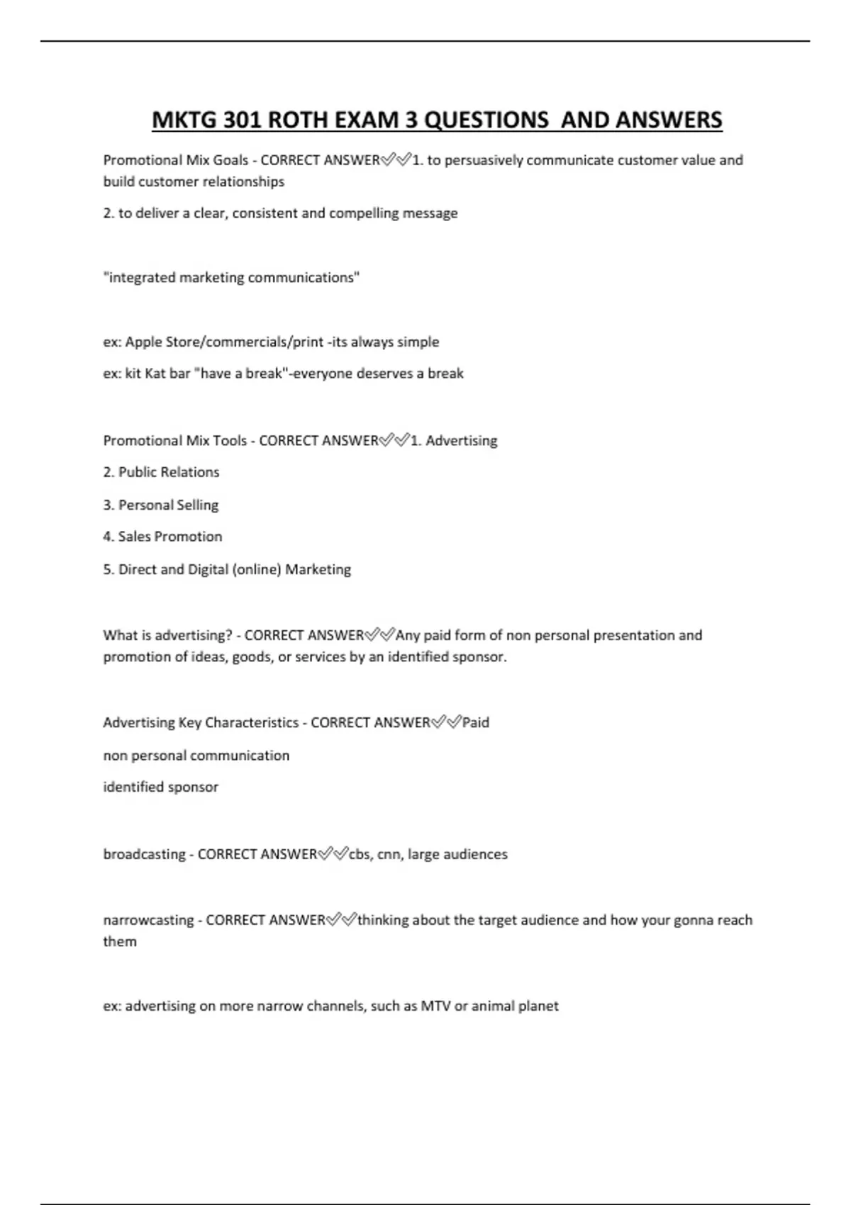 MKTG 301 ROTH EXAM 3 QUESTIONS AND ANSWERS