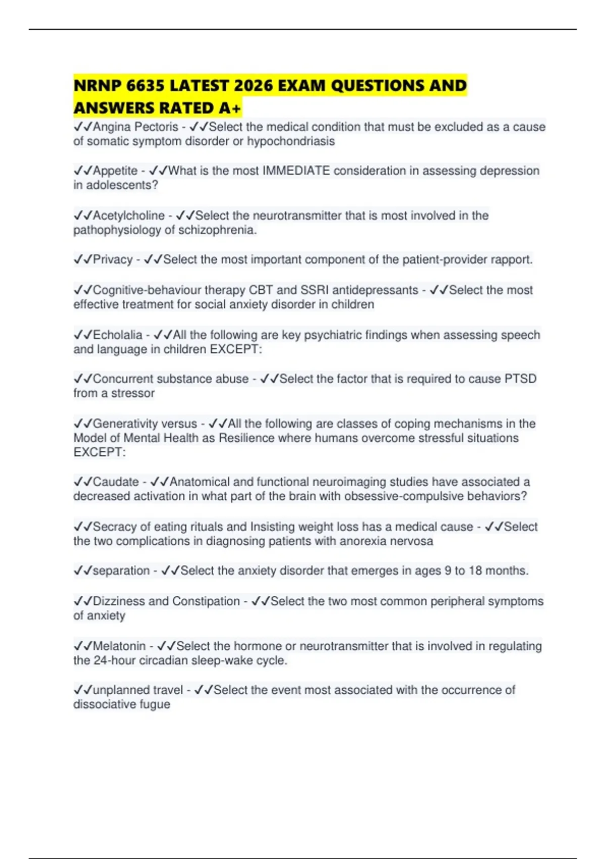 NRNP 6635 LATEST 2026 EXAM QUESTIONS AND ANSWERS RATED A+