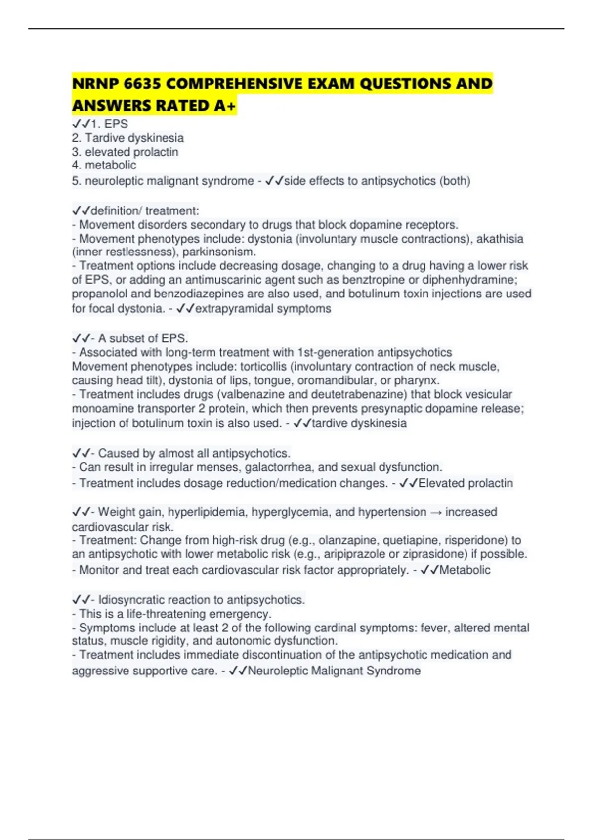 NRNP 6635 COMPREHENSIVE EXAM QUESTIONS AND