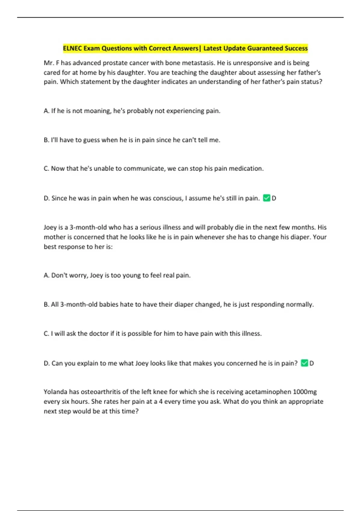 ELNEC Exam Questions with Correct Answers| Latest Update Guaranteed Success