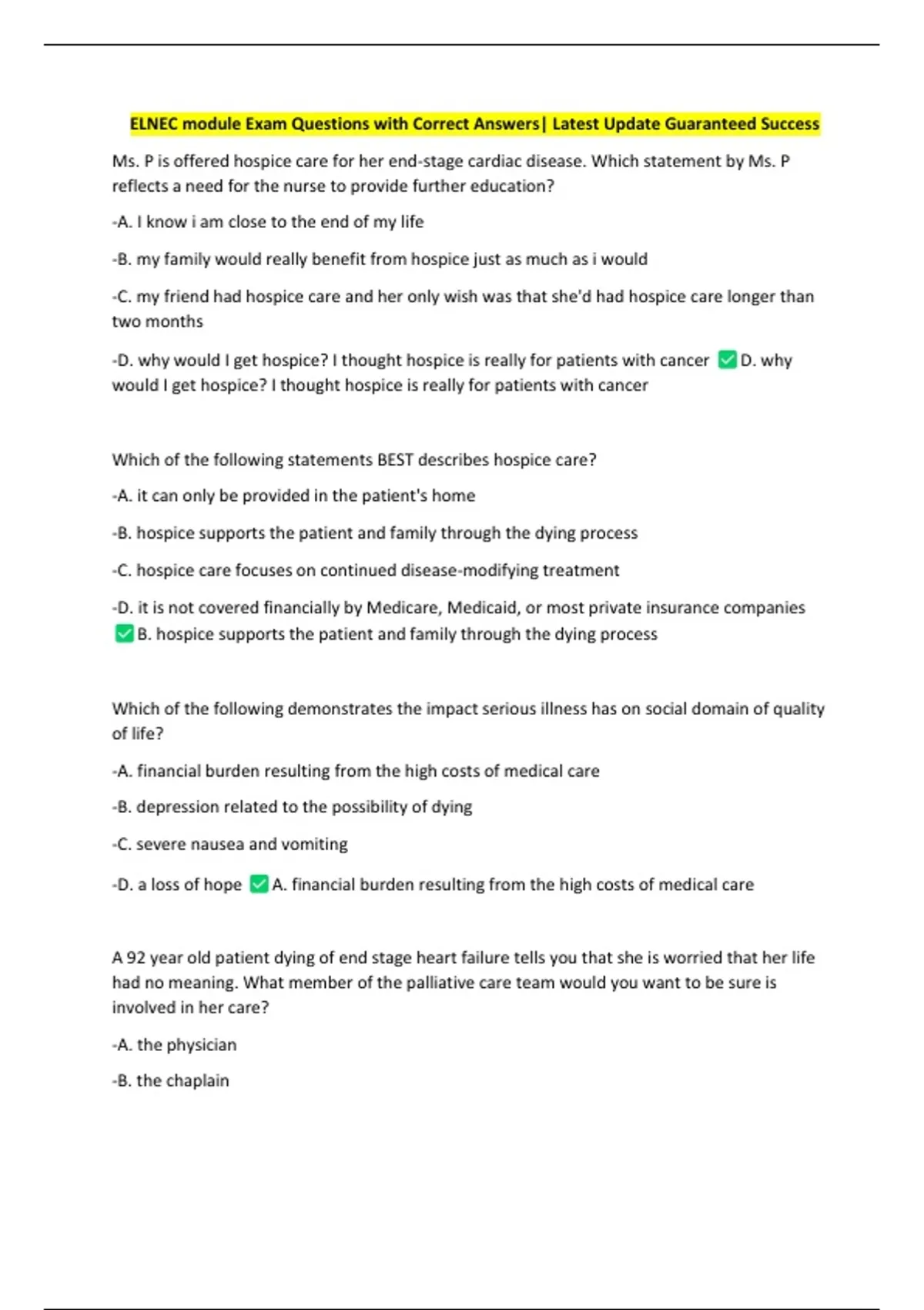 ELNEC module Exam Questions with Correct Answers| Latest Update Guaranteed Success