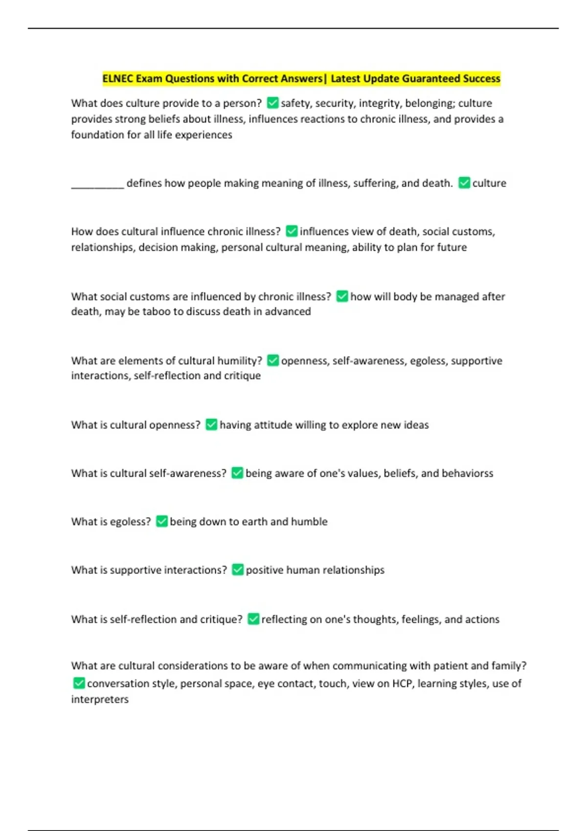 ELNEC Exam Questions with Correct Answers| Latest Update Guaranteed Success