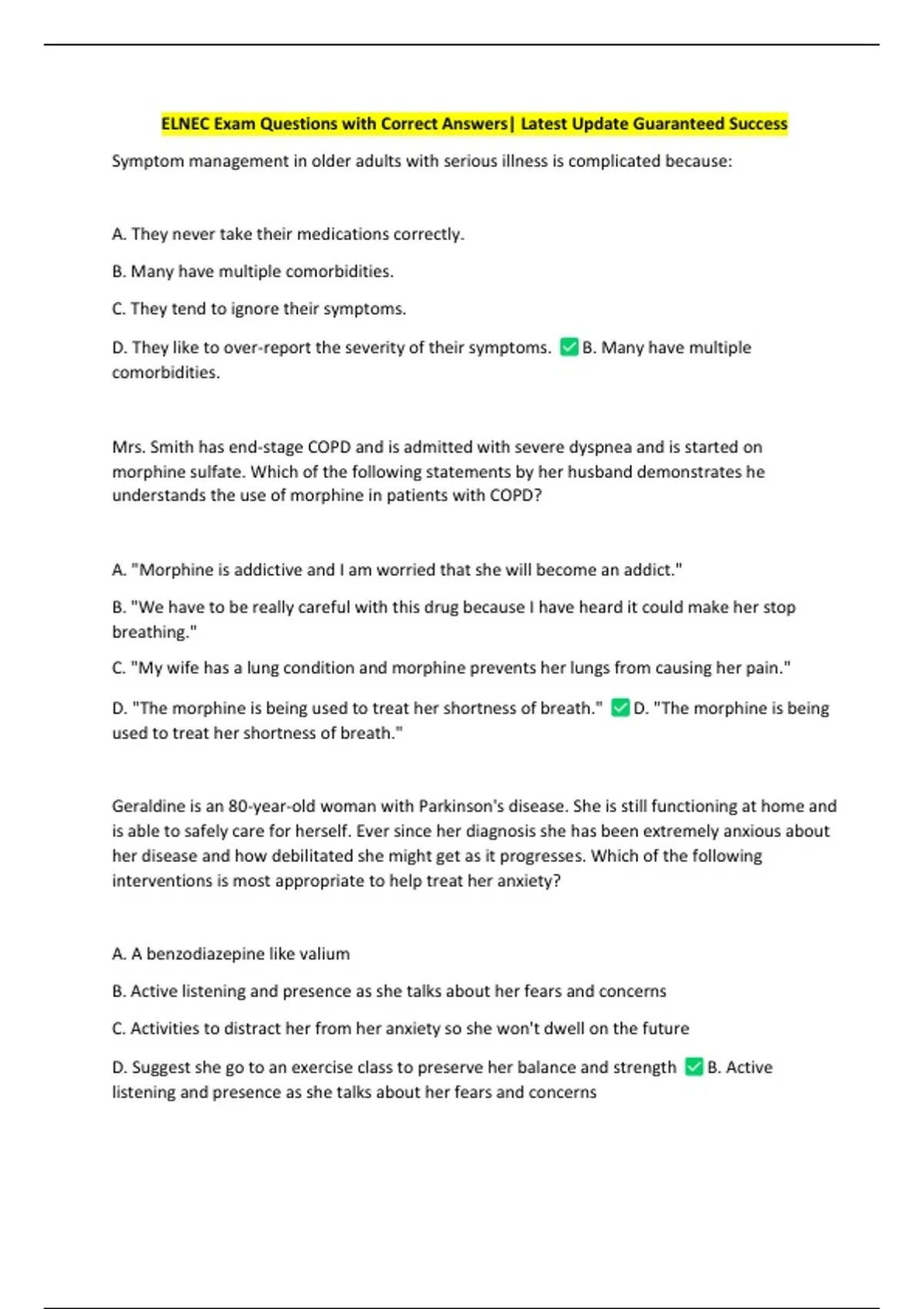 ELNEC Exam Questions with Correct Answers| Latest Update