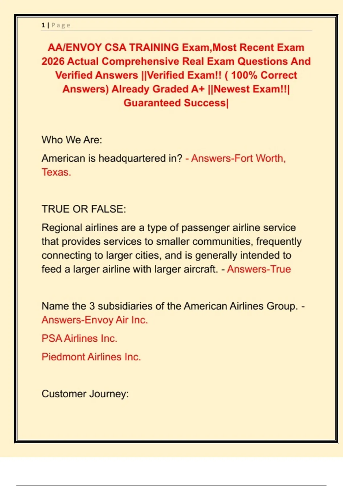 AA/ENVOY CSA TRAINING Exam,Most Recent Exam