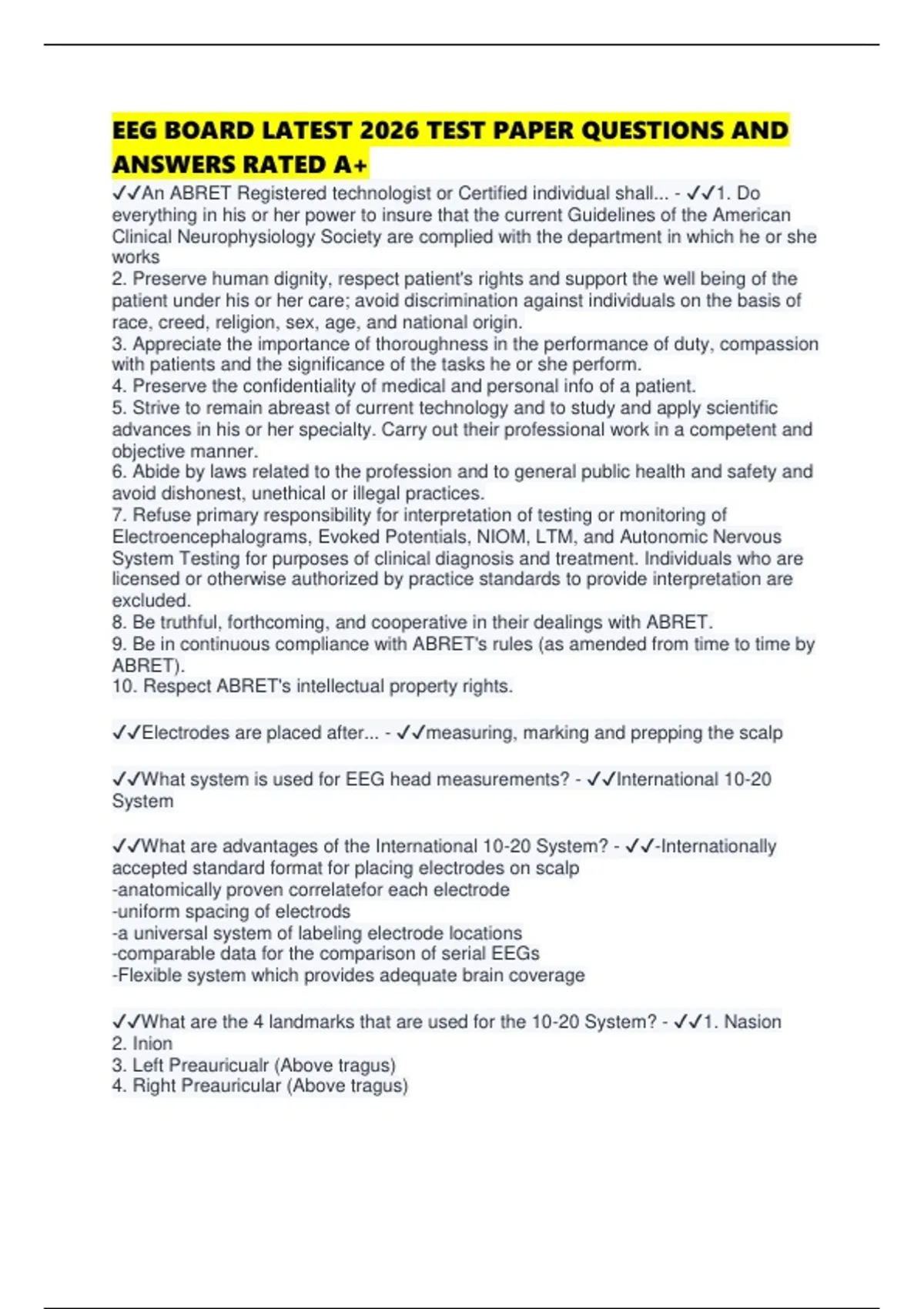 EEG BOARD LATEST 2026 TEST PAPER QUESTIONS AND ANSWERS RATED A+