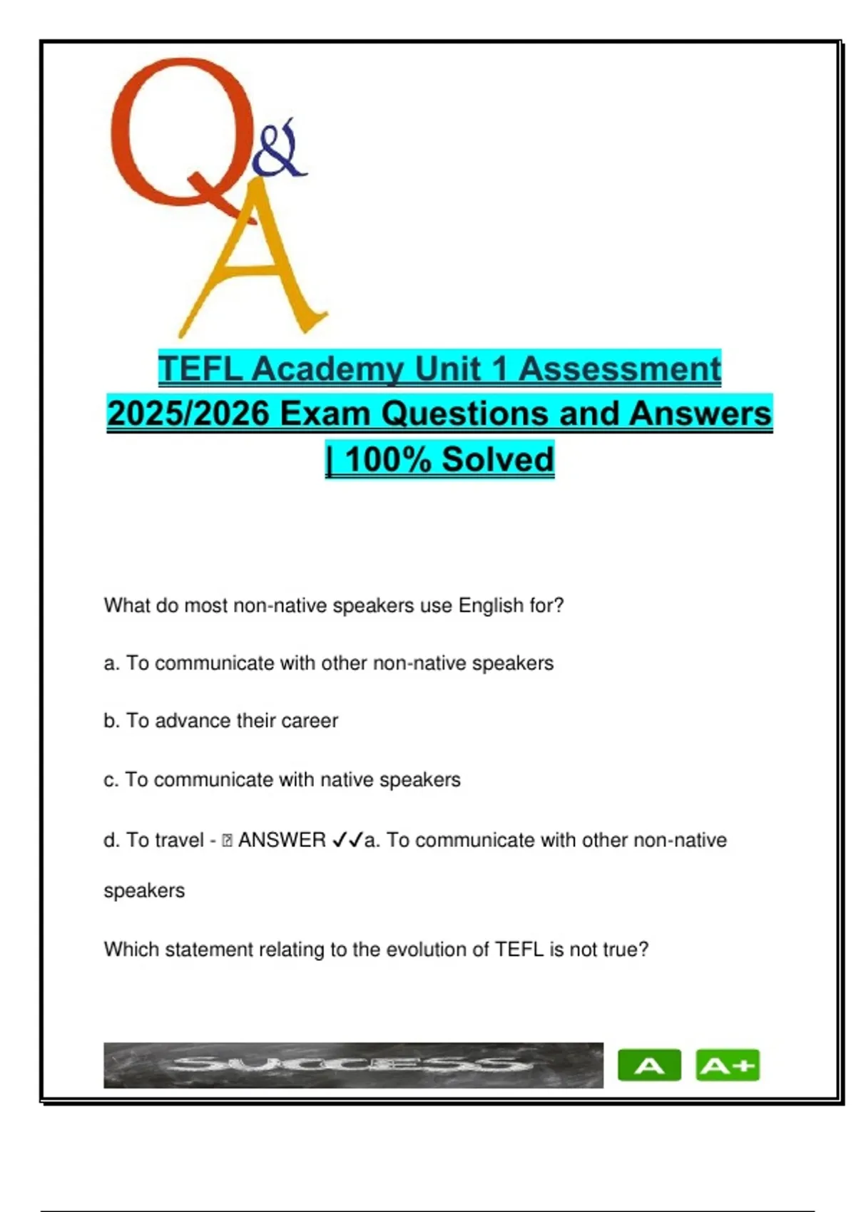 , a. A TEFL certification has become a requirement for teaching in some