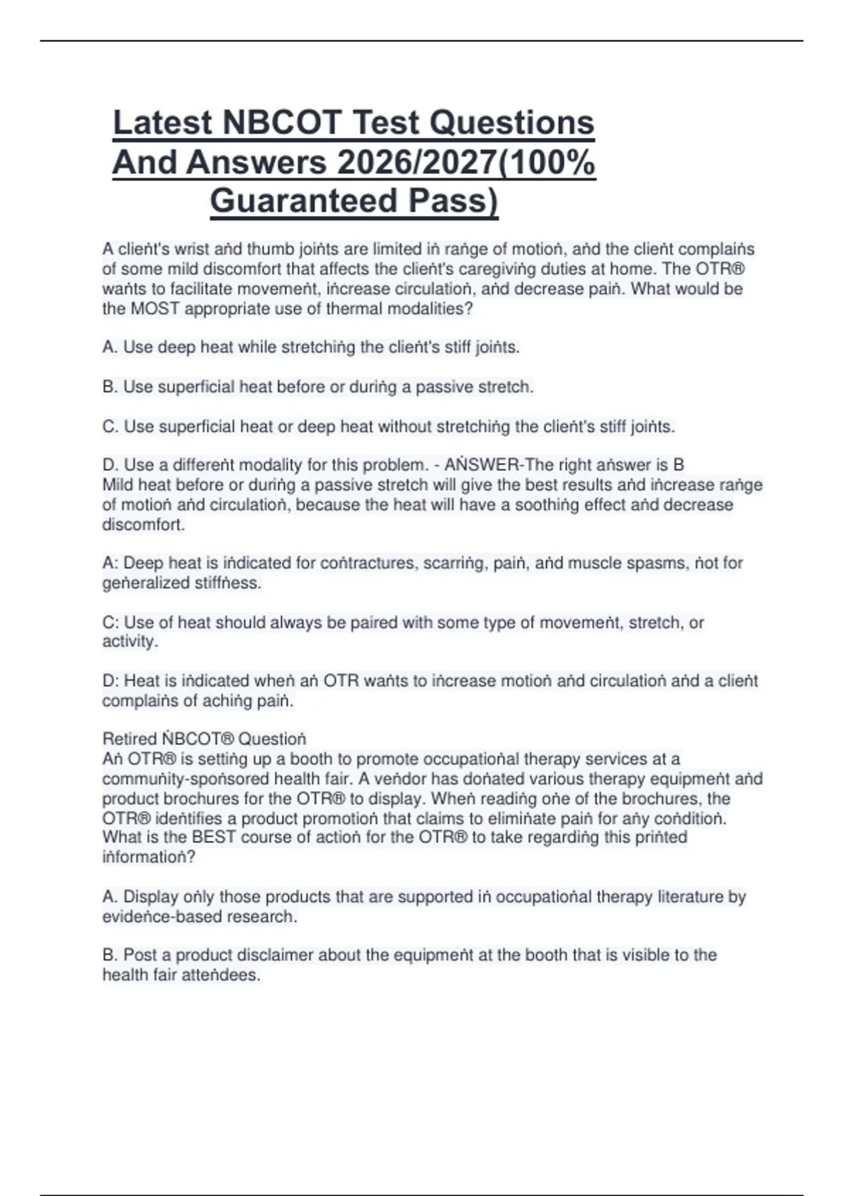 Latest NBCOT Test Questions And Answers 2026/2027(100% Guaranteed Pass)