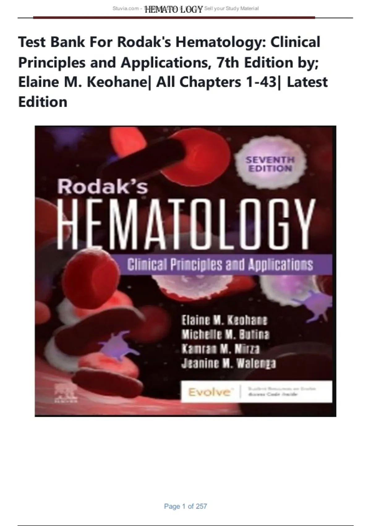 Test Bank For Rodak's Hematology: Clinical