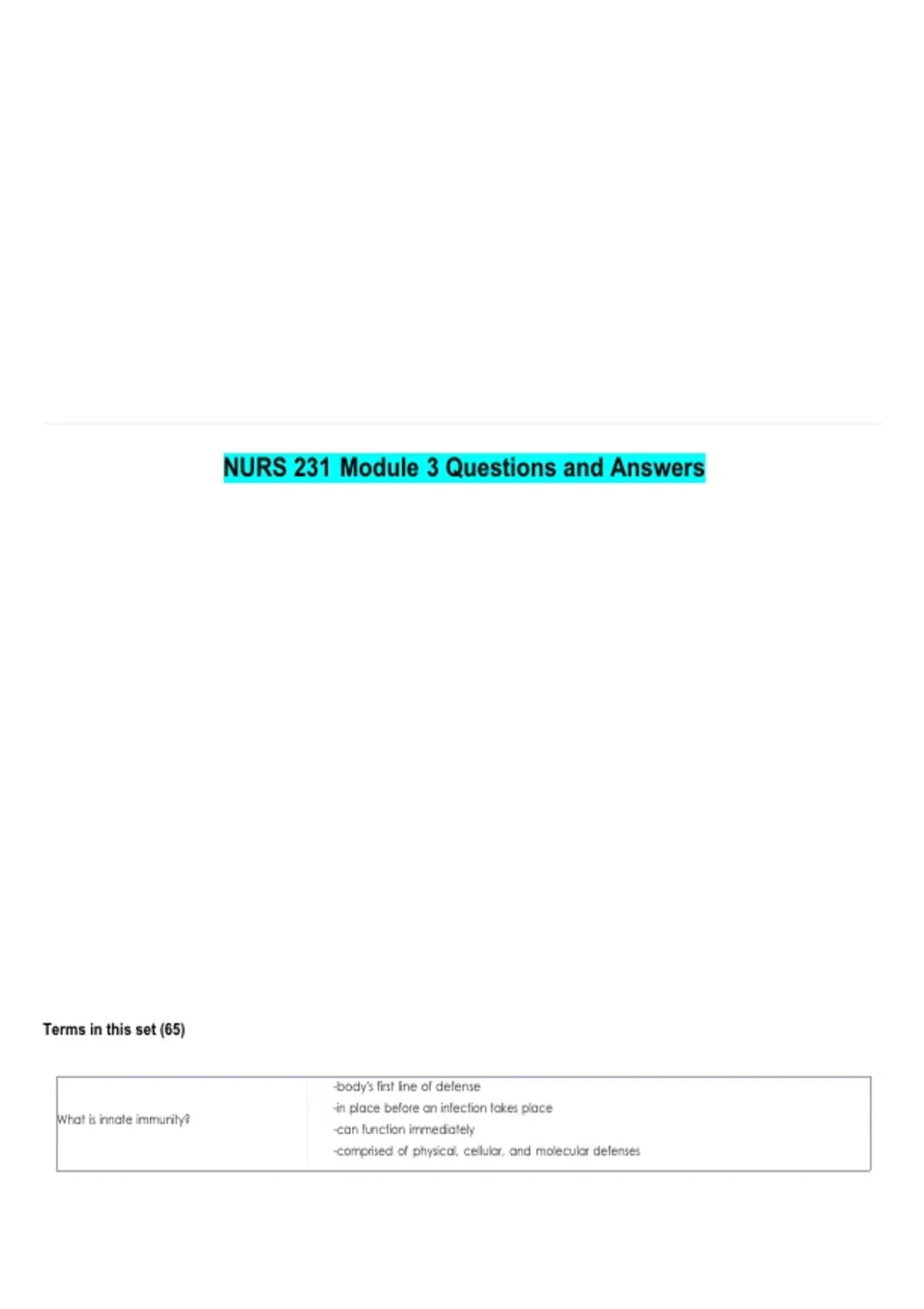 NURS 231 Module 3 Questions and Answers