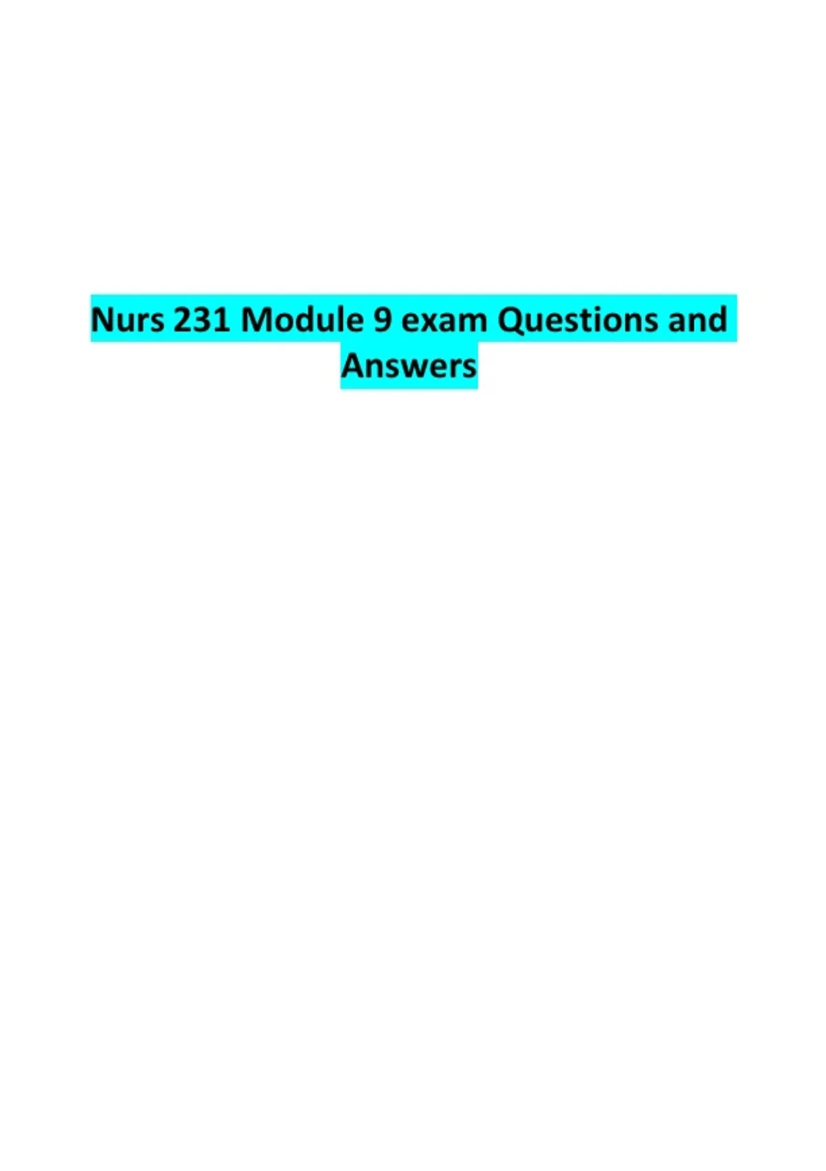 Nurs 231 Module 9 exam Questions and Answers