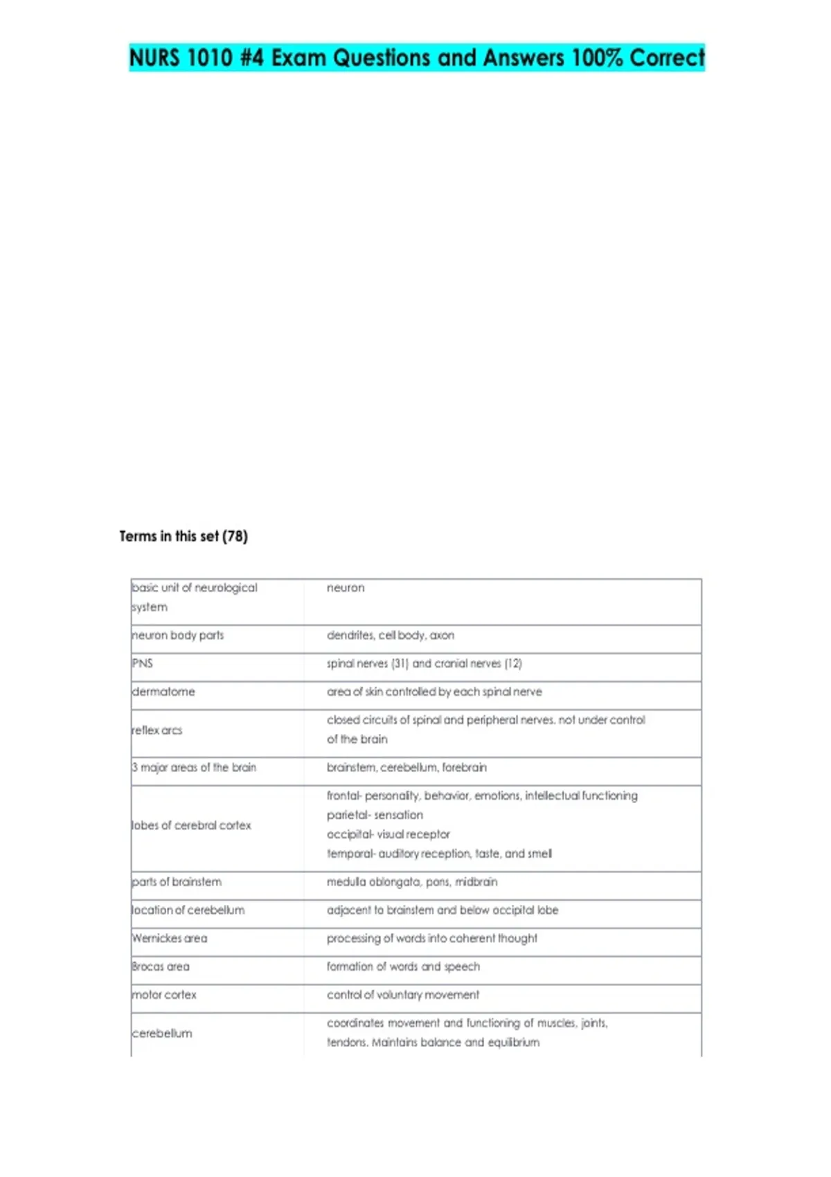 NURS 1010 #4 Exam Questions and Answers 100% Correct