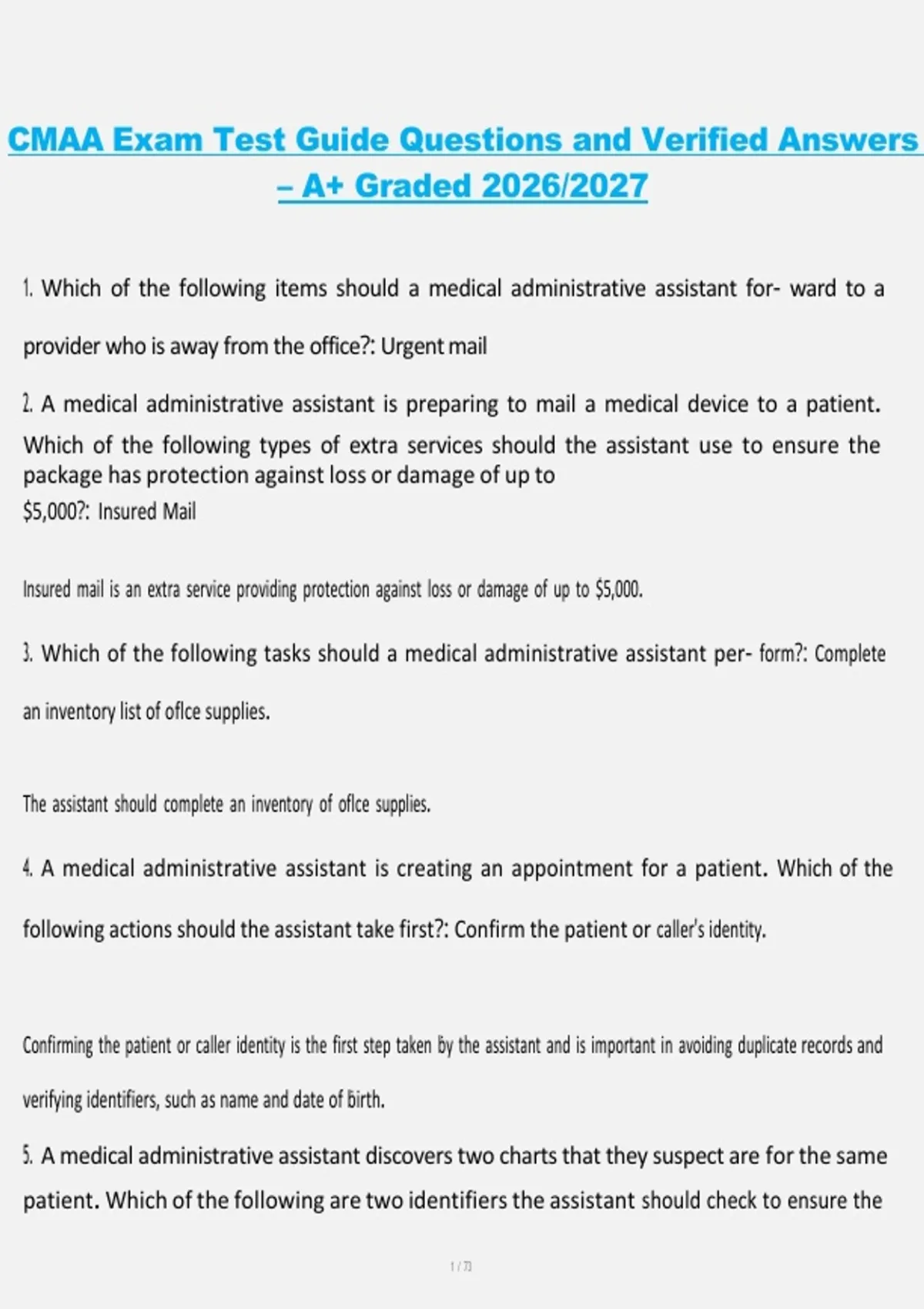 1. Which of the following items should a medical administrative assistant for- ward to a