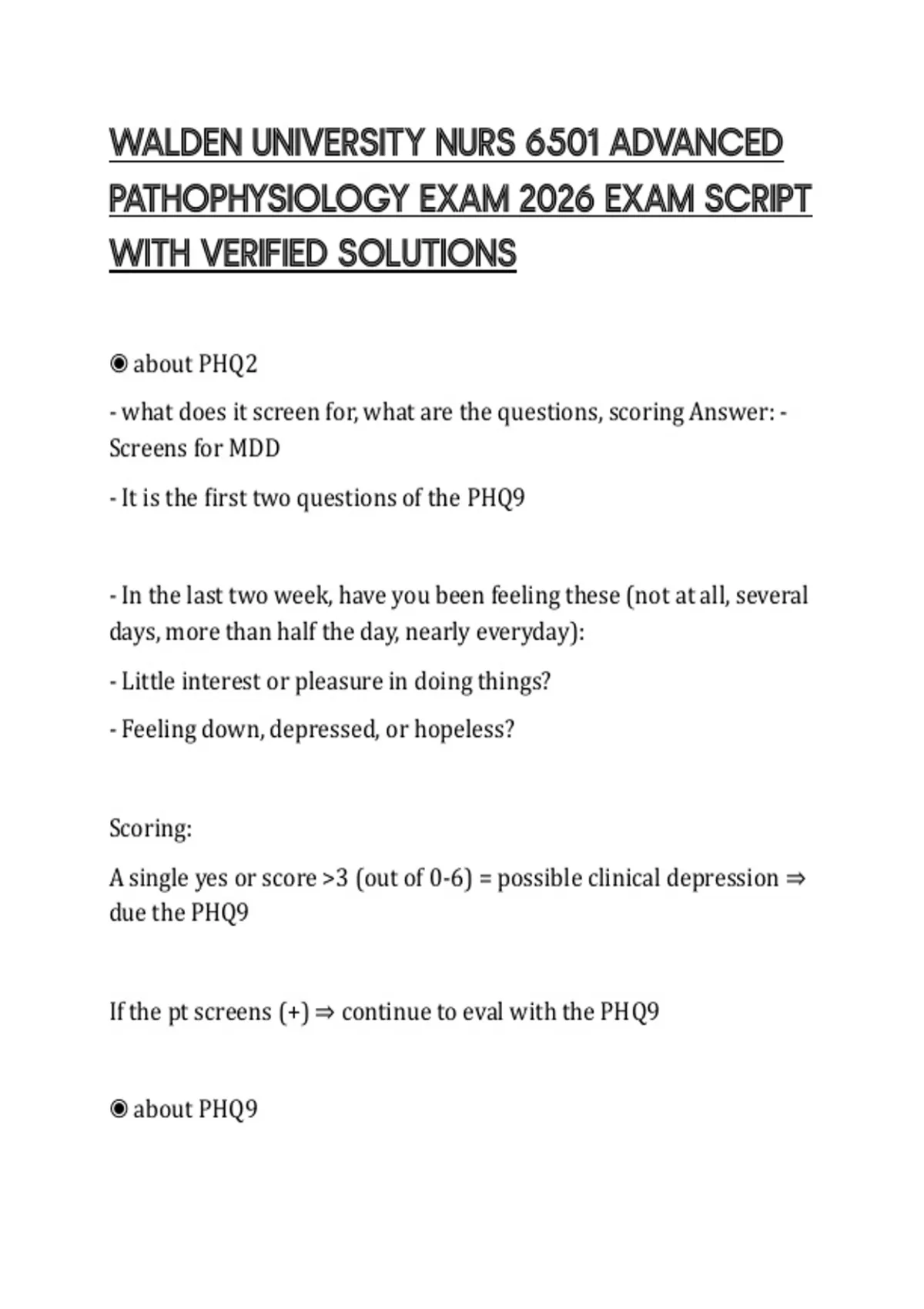 WALDEN UNIVERSITY NURS 6501 ADVANCED PATHOPHYSIOLOGY EXAM 2026 QUESTIONS AND ANSWERS