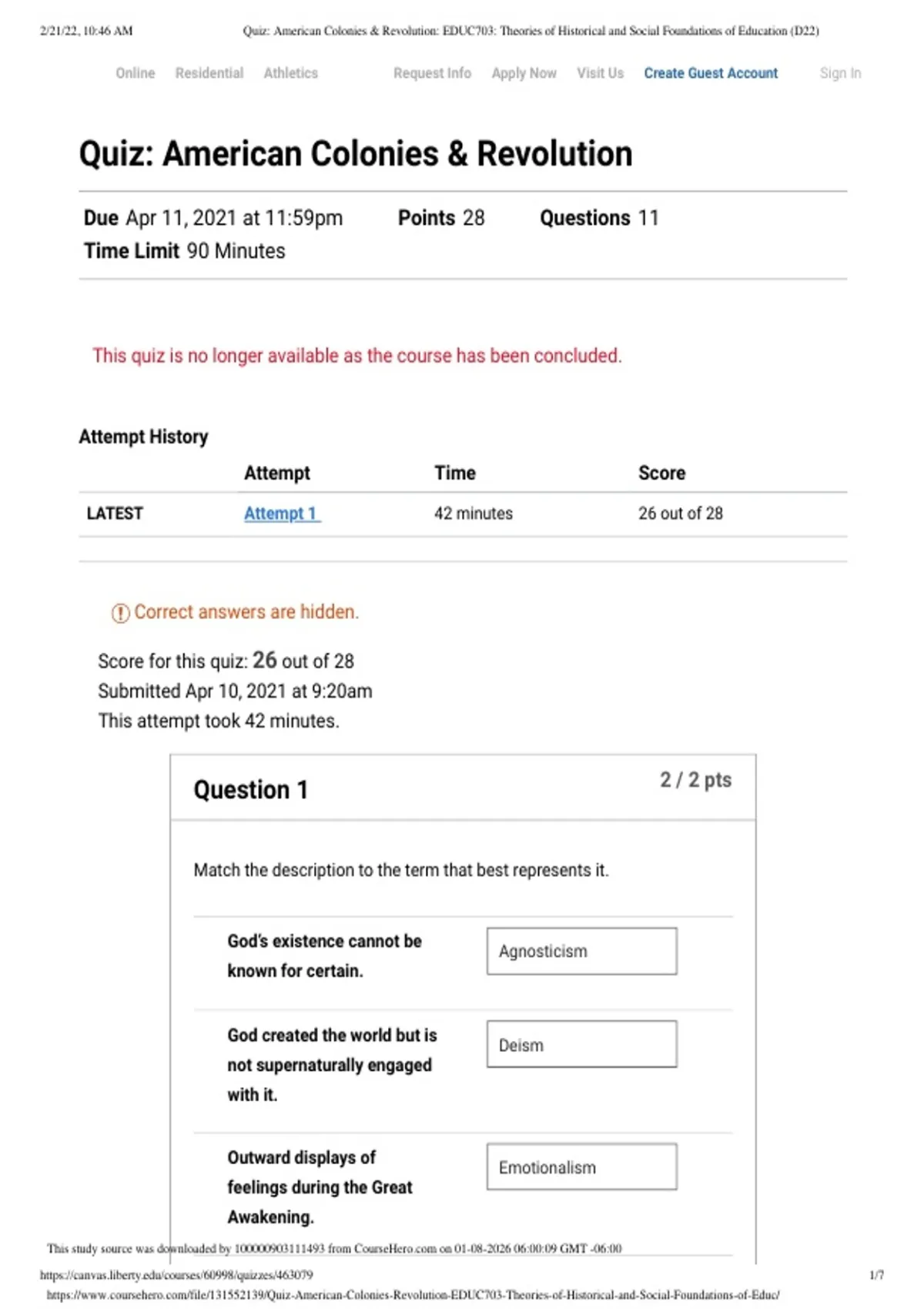 https://www.coursehero.com/file/131552139/Quiz-American-Colonies-Revolution-EDUC703-Theories-of-Historical-and-Social-Foundations-of-Educ/