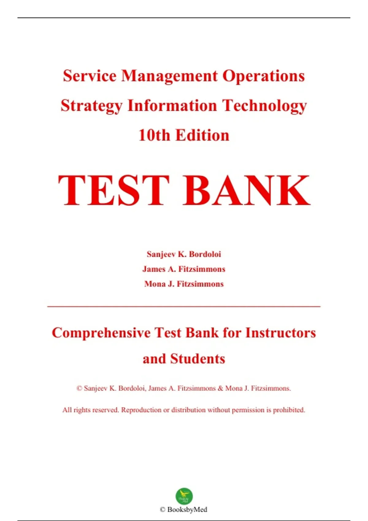 Test Bank — Service Management: Operations, Strategy, Information Technology, 10th Edition — Sanjeev K. Bordoloi, James A. Fitzsimmons & Mona J. Fitzsimmons — ISBN 9781264098354 — Latest Update 2025/2026 — (All Chapters Covered 1–16)