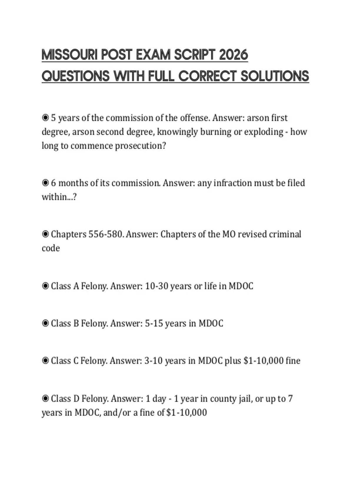 MISSOURI POST EXAM SCRIPT 2026 QUESTIONS WITH FULL CORRECT SOLUTIONS