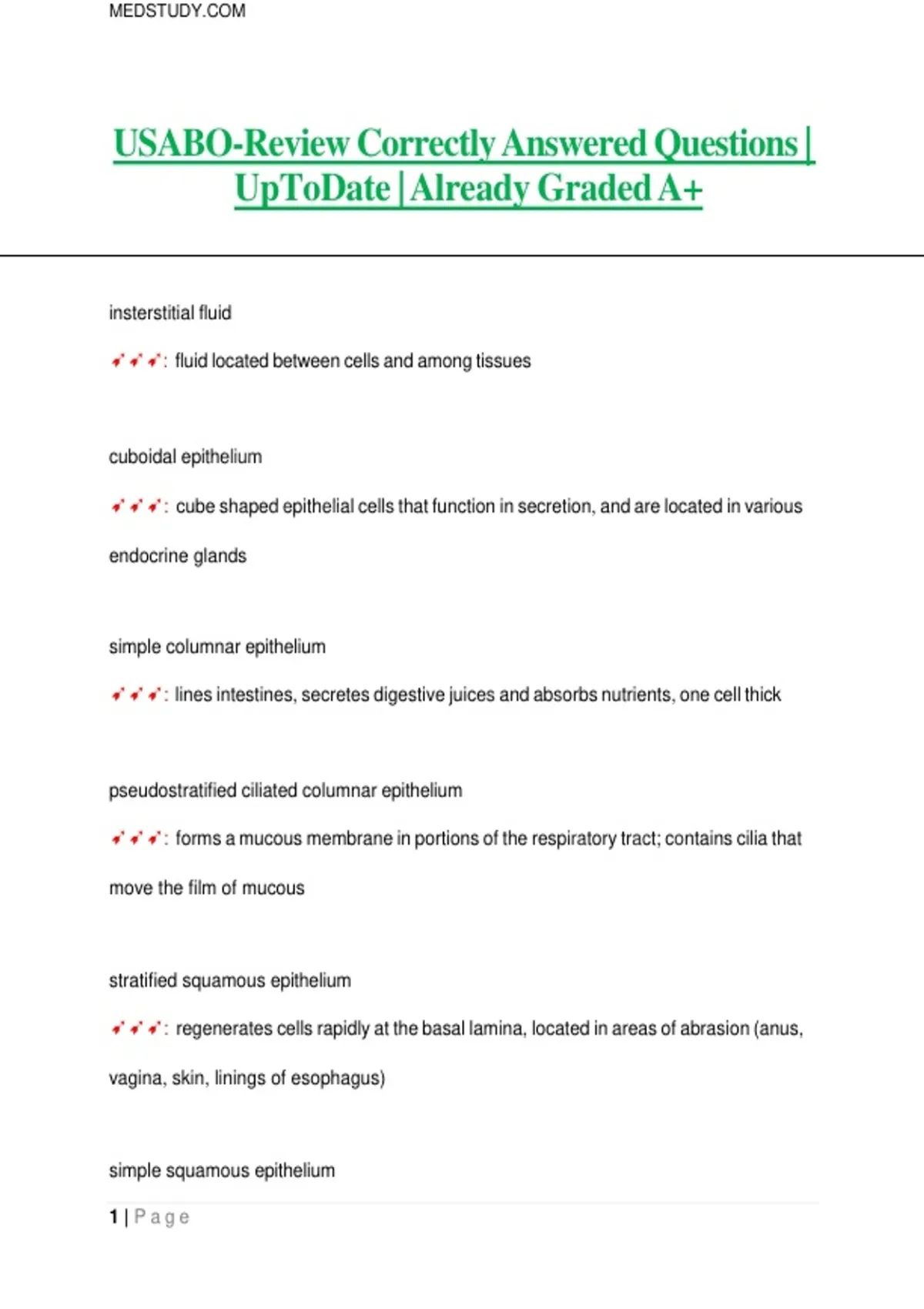 USABO-Review Correctly Answered Questions | UpToDate | Already Graded A+