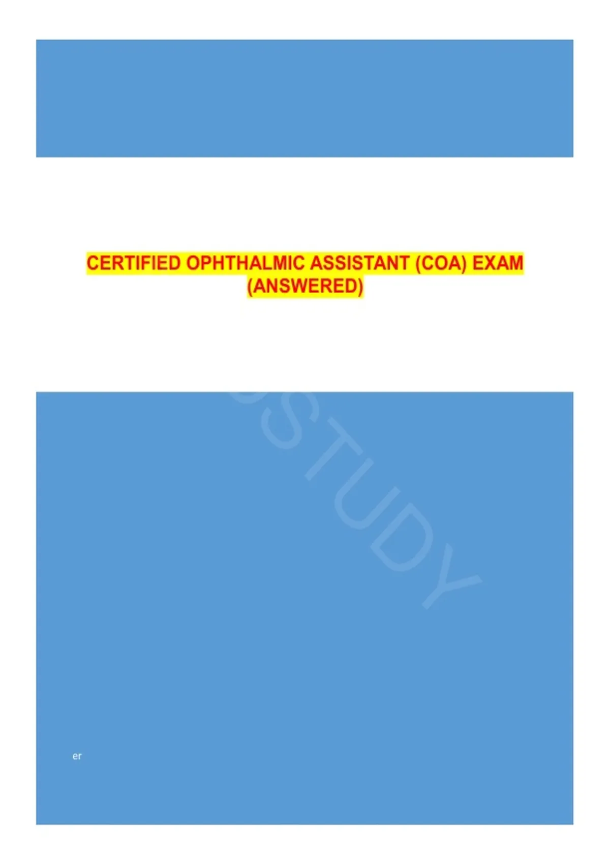 CERTIFIED OPHTHALMIC ASSISTANT (COA) EXAM (ANSWERED)